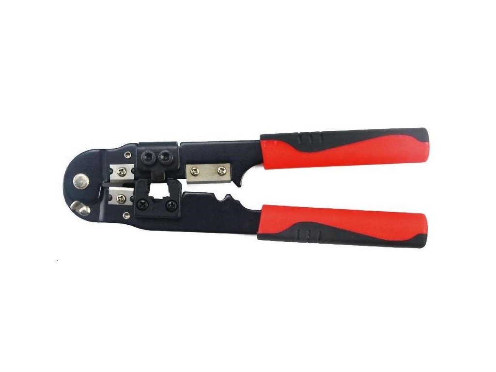 multifunkčný sieťový nástroj 3 v 1. Môže sa používať na strihanie, odizolovanie vodičov a lisovanie zástrčiek. Vhodné pre konektory RJ45/8P8C. Praktická funkcia uzamknutia..Dodatočné parametre