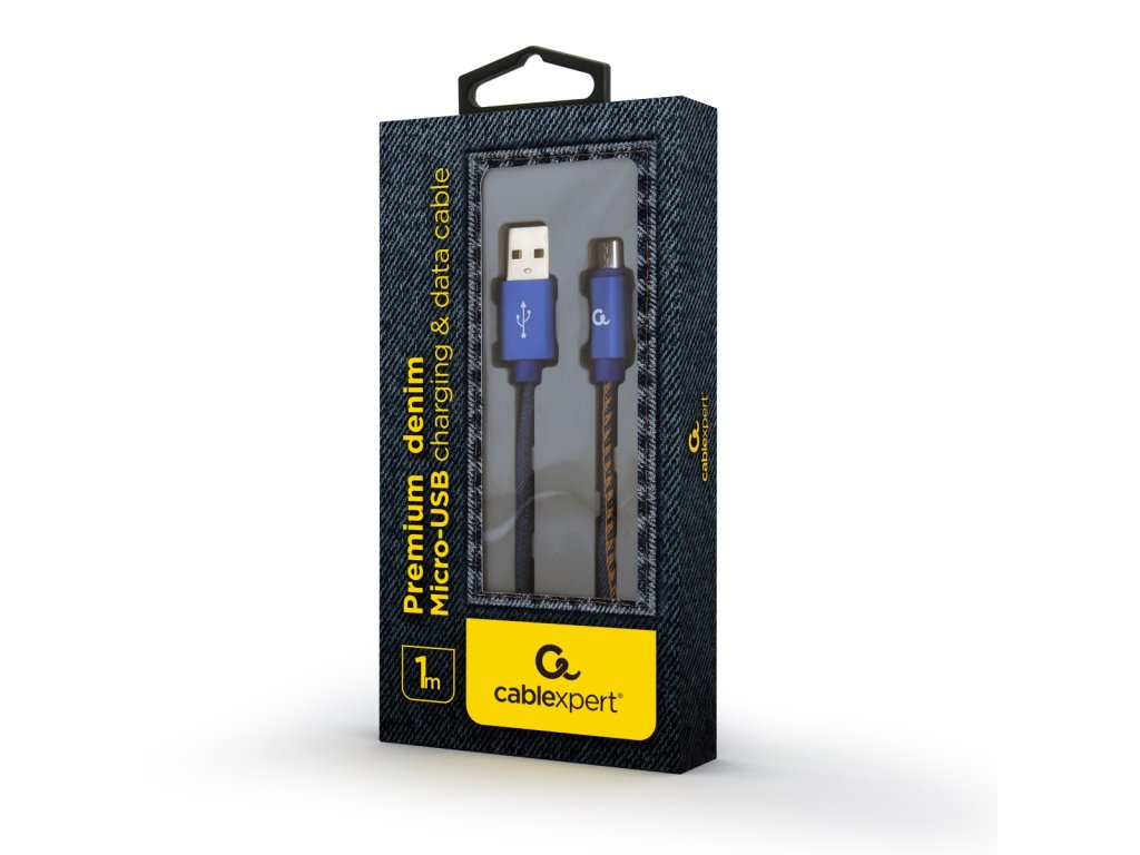 Gembird oplietaný denim USB-A/microUSB kábel 1m CC-USB2J-AMmBM-1M-BL