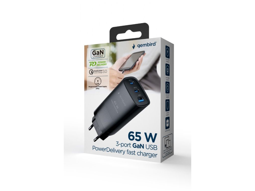 GEMBIRD PD nabíjačka 1xUSB-A 2xUSB-C 67W čierna TA-UC-PDQC65-01-BK