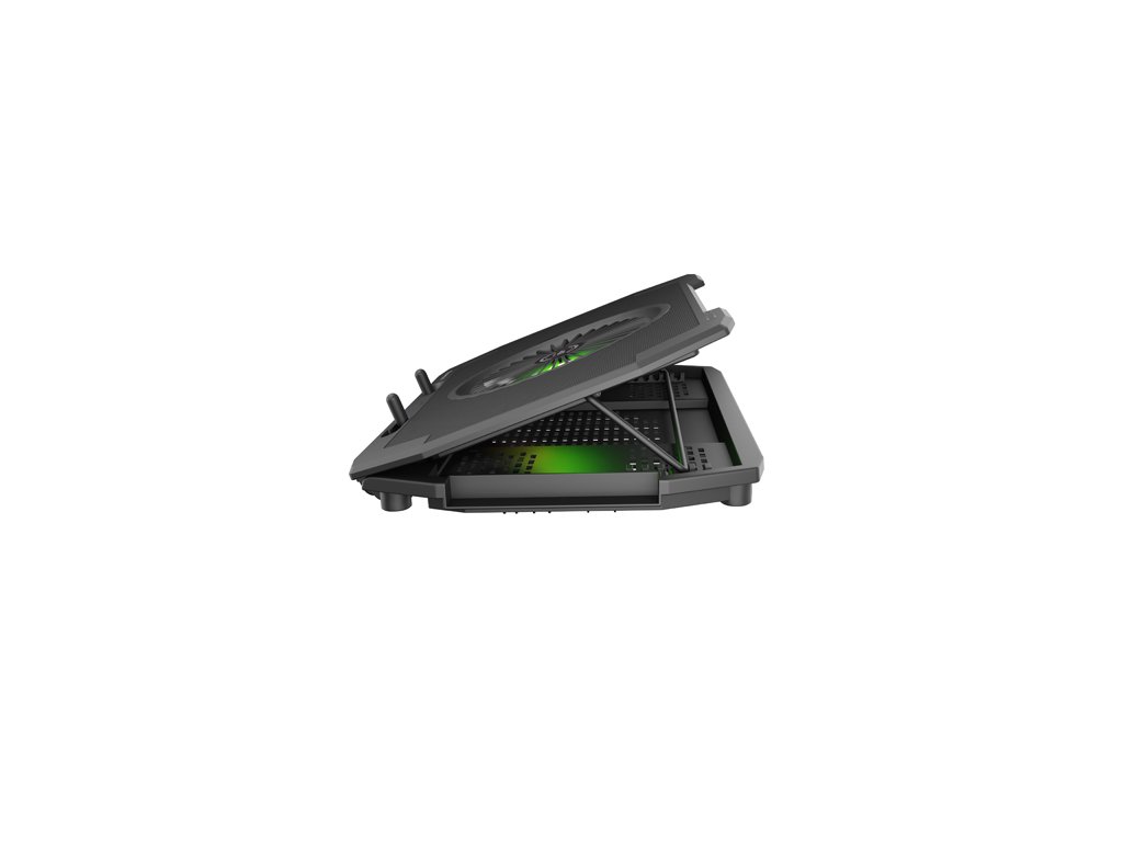 Genesis OXID 850 je chladicí stojan určený pro notebooky s úhlopříčkou až 17,3'', který pomáhá udržovat správnou teplotu zařízení během intenzivního hraní her. Jeho sklopné nožičky zvýší ergonomii práce a efektní RGB osvětlení hlavního ventilátoru bude dokonalým doplňkem každé herní stanice. Pět ventilátorů Stojan OXID 850 je vybaven účinným a bezpečným chladicím systémem založeným na čtyřech malých ventilátorech, které odvádějí teplo zpod notebooku, a jednom hlavním ventilátoru, který přivádí studený vzduch do notebooku. Správné umístění ventilátorů zajišťuje mimořádně účinné chlazení a třístupňová regulace rychlosti jejich otáčení účinně sníží teplotu notebooku i během nejzuřivějších bitev. Ergonomický design Stojan OXID 850 má šestistupňovou regulaci úhlu sklonu, která vám umožní dokonale přizpůsobit jeho nastavení vašim individuálním preferencím. Dopřejte si ten nejlepší herní zážitek a hrajte podle svých vlastních podmínek! Skládací nohy Oxid 850 je jedinečný stojan se sklopnými nožičkami, které umožňují rychlou změnu výšky notebooku. Díky tomu můžete mít ergonomicky optimální polohu při sezení s možností nastavení obrazovky na úroveň svého zraku. Předejdete tak bolesti krku a únavě očí po dlouhém hraní her. Zůstaňte v pohodlí s chladícím podstavcem Oxid 850! Efektní RGB podsvícení OXID 850 je nejen účinný, pokud jde o chlazení, ale má také působivý design. Díky intenzivnímu RGB podsvícení hlavního ventilátoru si můžete být jisti, že stojan dodá vaší pracovní stanici jedinečný herní charakter. Vestavěný rozbočovač USB Pro maximální funkčnost je OXID 850 vybaven dvěma porty USB 2.0. Jeden slouží k napájení stojanu a druhý vám umožní připojit další zařízení, abyste měli vždy po ruce to, co potřebujete. Vlastnosti: - Ergonomická vysoce výkonná chladicí podložka pro notebooky s úhlopříčkou až 17,3'' vybavená skládacími nožkami, které umožňují nastavit výšku podložky a současně zvyšují komfort používání. - Pět účinných ventilátorů s třístupňovou regulací rychlosti, které zajišťují plynulou práci notebooku. - Šest úrovní nastavení úhlu pro pohodlné pozorovací úhly. - Hlavní ventilátor má účinné RGB podsvícení. - Stojan je napájen jedním ze dvou vestavěných portů USB 2.0. Specifikace: Vyhrazená velikost notebooku: do 17.3 '' Rychlost otáček: 1100 - 2500 OTÁČEK ZA MINUTU Proudění vzduchu: 70 - 70 CFM Počet instalovaných ventilátorů: 5 Instalované ventilátory: 1x140 mm 4x 60 mm Nastavitelný úhel sklonu: 6 úrovní Podsvícení: Ano Typ ložiska: Sleeve Materiál: ABS, Kov Napájení: USB (5 V) Úroveň hluku: 56 dB Barva: Černá Délka: 400 mm Šířka: 270 mm Výška: 35 mm Hmotnost: 1400 gDodatočné parametre