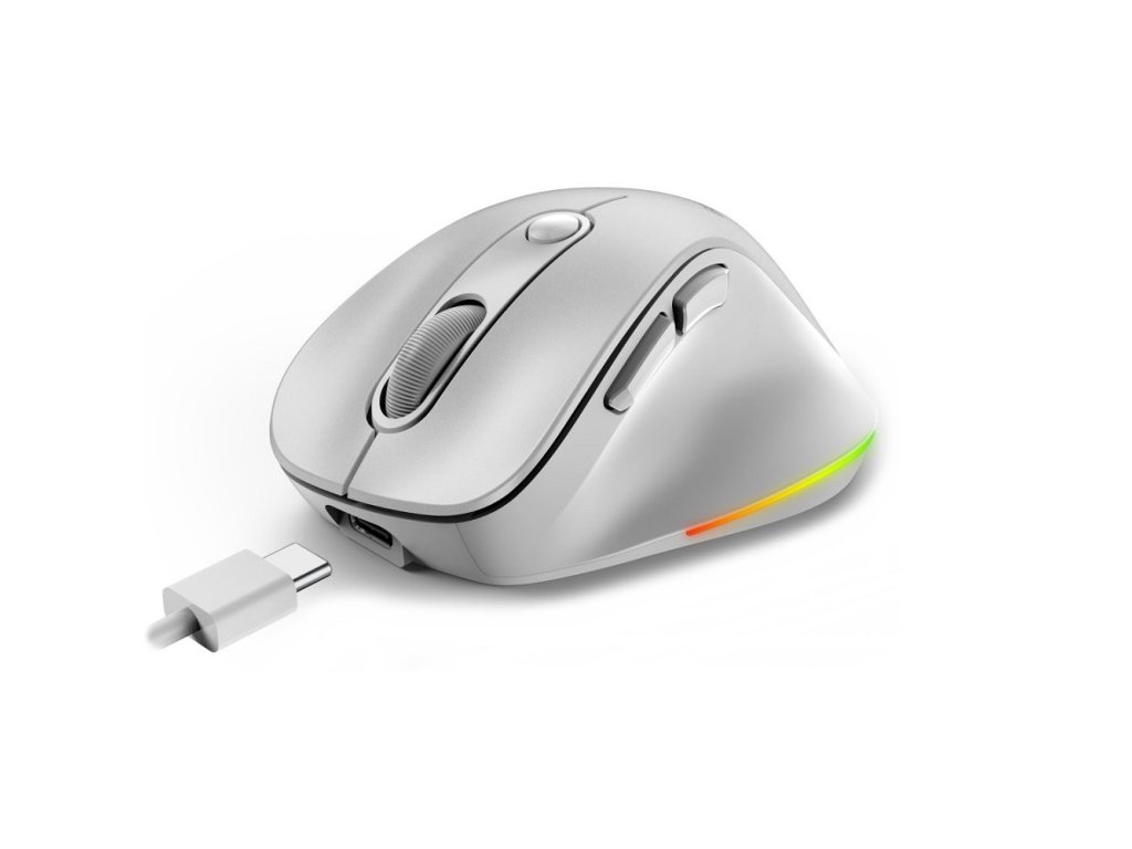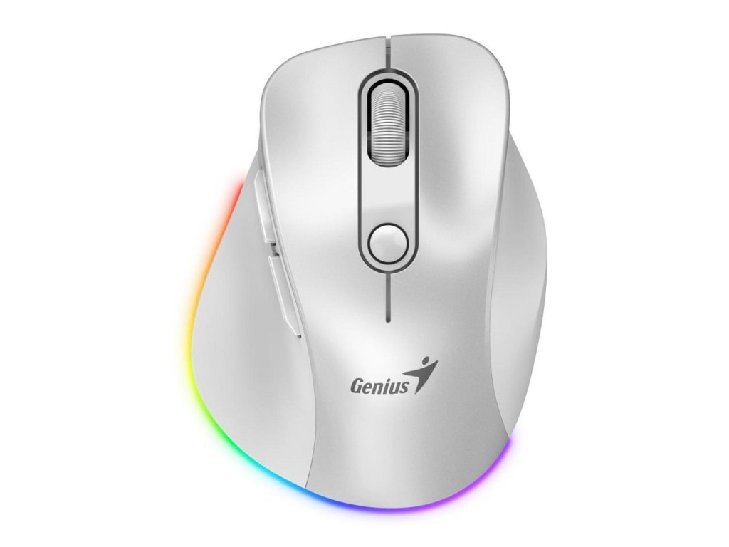 Genius Ergo 9000S Pro dobíjecí bezdrátová Bluetooth mini ergonomická tichá myš * duální režim: Bluetooth a 2,4GHz * připojení až ke třem zařízením * RGB podsvícení - 7 barev Technické parametry Počet tlačítek: 6 Rolovací kolečko: ano DPI: 800/1200 (výchozí)/1600/2400 Senzor: optický Rozhraní: bezdrátový přijímač USB 2,4GHz, Bluetooth 5.0, USB-C pro nabíjení Dosah: 10m Baterie: vestavěná dobíjecí 500mAh Systémové požadavky * 2,4GHz: volný port USB, Windows, macOS, Chrome OS * Bluetooth: Windows, macOS X, Chrome OS, iOS, iPadOS, Android Barva: bílá (Pearl White) Rozměry: 90,7×68,2×39,3mm Hmotnost: 65g Obsah balení: * bezdrátová BT mini ergonomická myš * přijímač USB * nabíjecí kabel USB-A na USB-C * uživatelská dokumentaceDodatočné parametre