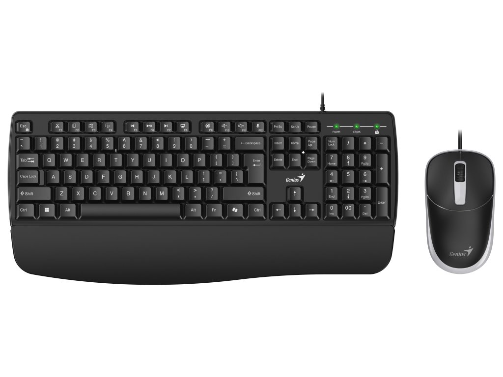 Nechybí zkratkové klávesy pro základní úkony s texty, tabulkami nebo ovládání multimédií. Samozřejmostí je také přítomnost numerického bloku pro zadávání čísel. Konstrukce Spill-resistance chrání klávesnici v případě náhodného polití. Optická myš Genius s rozlišením 1200 DPI citlivě a přesně reaguje na instrukce při ovládání aplikací, surfování po internetu a dalších firemních činnostech. Připojení Plug & Play zajistí okamžité drátové připojení bez nutnosti instalace dalších ovladačů.