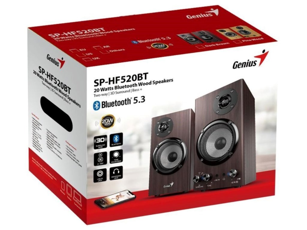 GENIUS Reproduktor SP-HF520BT, BT, 3.5mm jack, 20W, tmavé dřevo 31730054401