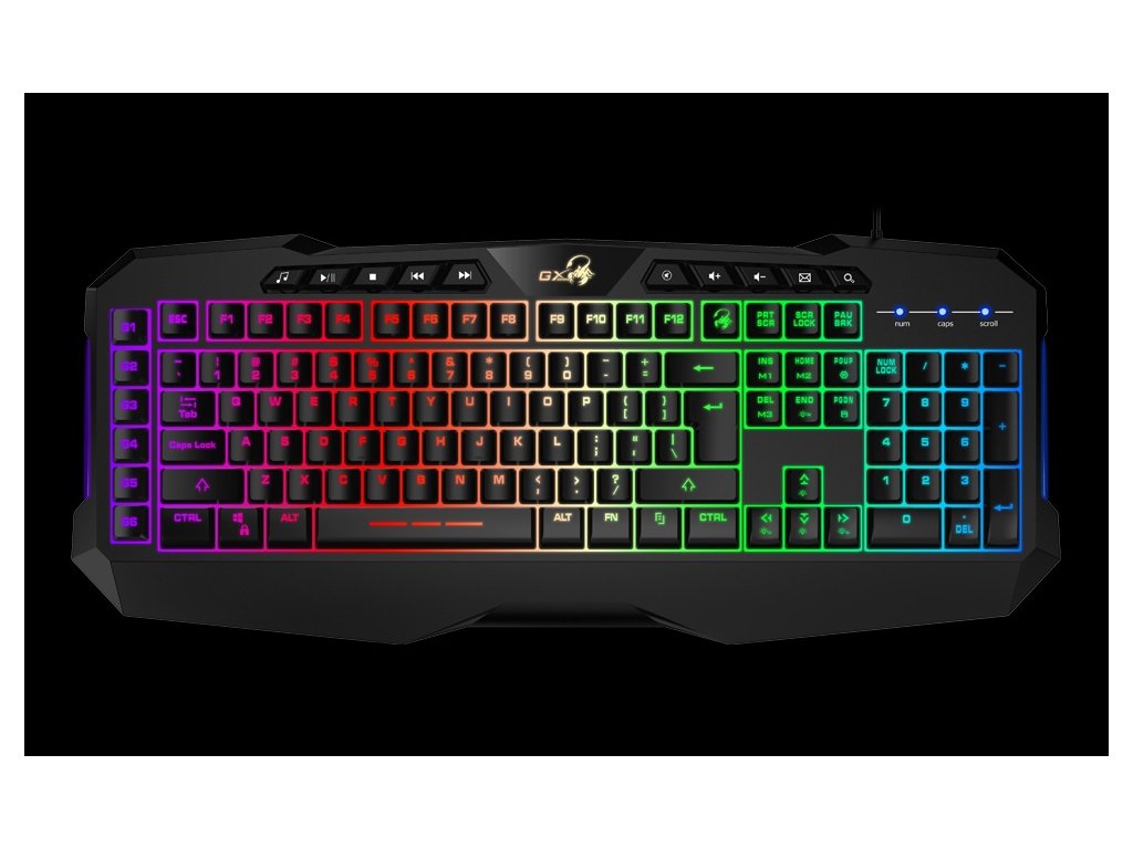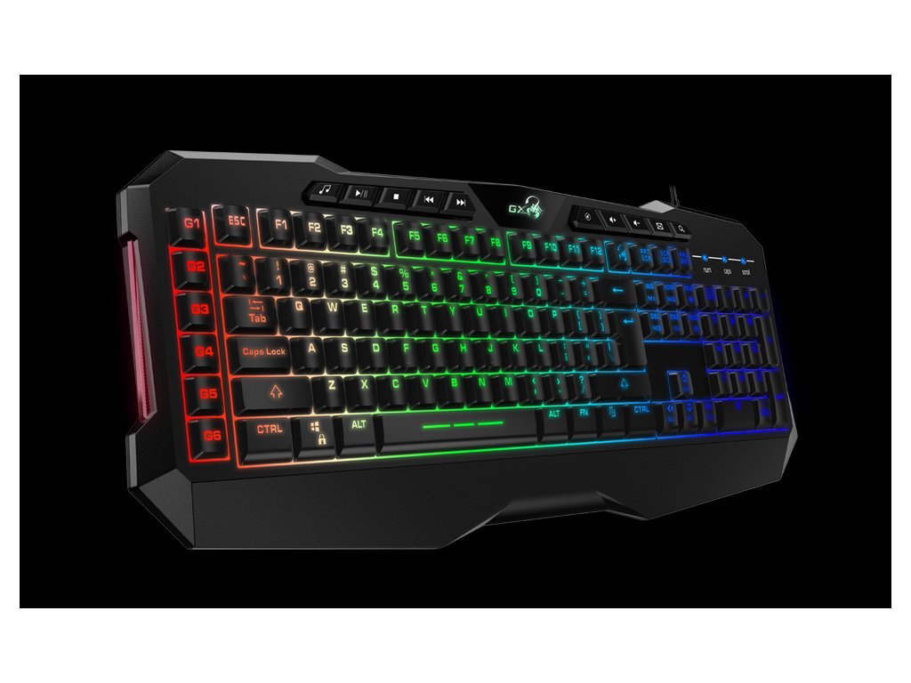 GENIUS Scorpion K11 Pro Rozhraní: USB Klávesy: konkávní Funkční klávesy: ano (programovatelné) Multimediální klávesy: 12 Životnost kláves: 10 milionu úhozů Podsvícení: ano (RGB LED) Anti-Ghosting: ano (19 kláves) N-Key Rollorer: ano (19 kláves) Délka kabelu: 1,8 m Hmotnost: 598 g Rozměry: 490 x 204 x 30 mmDodatočné parametre