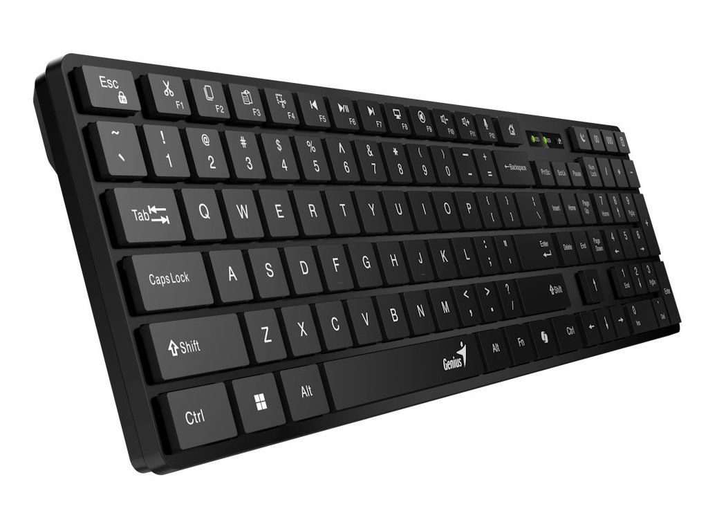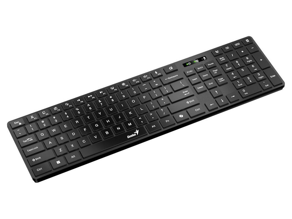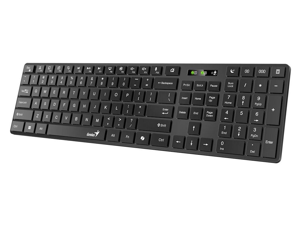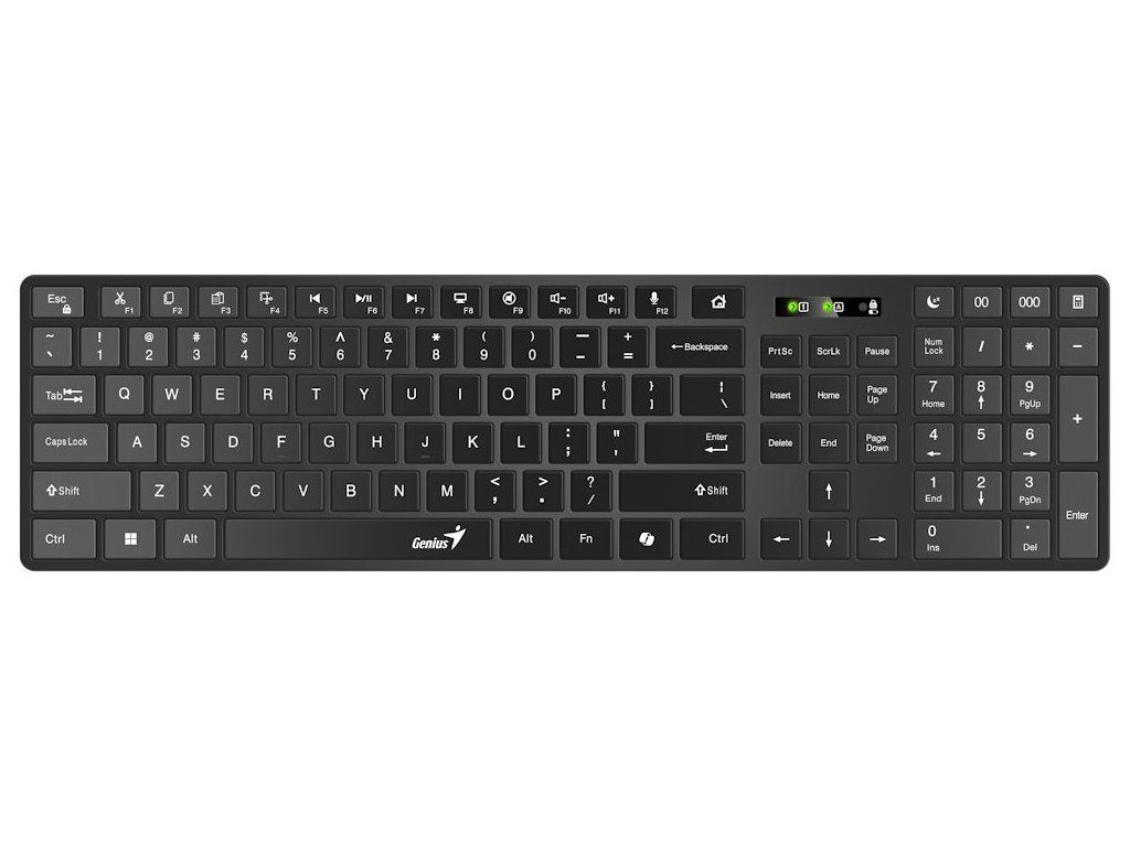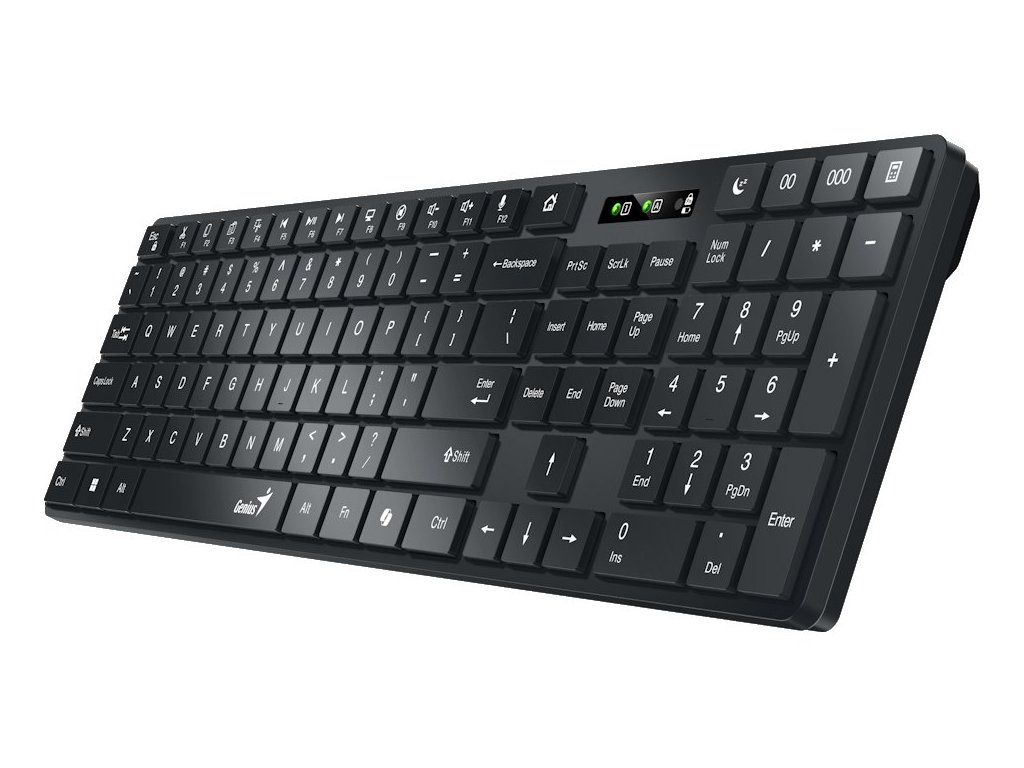 Bezdrátová klávesnice Genius SlimStar 7250BT vám usnadní práci ve firemní i domácí kanceláři. Tenký design s nízkoprofilovými klávesami zajistí komfortní a rychlé psaní. Bezdrátové připojení pomocí technologie Bluetooth vám umožní pracovat bez kabelu, který ze všeho nejvíc umí hlavně překážet. Díky Bluetooth připojení je klávesnice Genius SlimStar 7250BT kompatibilní s celou řadou zařízení a operačních systémů – Windows, macOS, ChromeOS, iOS, iPadOS a Android. Multimediální zkratky vám zjednoduší ovládání hudby nebo videí. Samozřejmostí je také přítomnost numerické části pro snadné zadávání čísel.