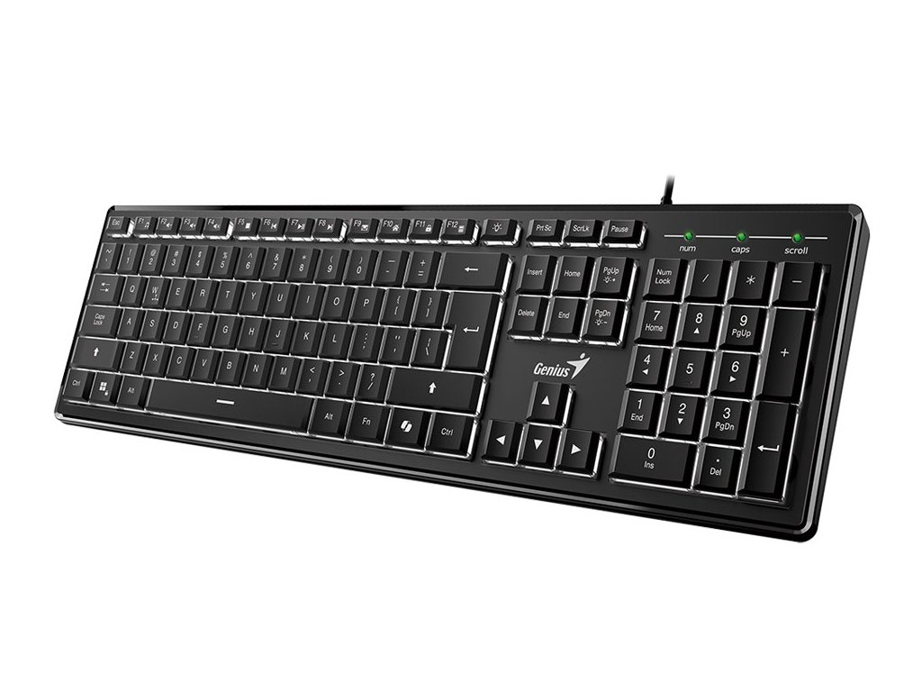 Genius SlimStar 820Klasická drátová klávesnice je navržena tak, aby uživateli poskytla maximální komfort při každodenní práci. Ergonomický sklon společně s nízkoprofilovými klávesami umožňuje efektivní a pohodlné psaní. Předností klávesnice je nastavitelné podsvícení a samostatná klávesa pro vyvolání AI asistenta Windows Copilot. Připojení k počítači je realizováno skrze USB port.
