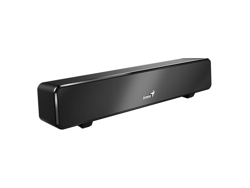 Genius USB Soundbar 100 - plug and play soundbar v konfiguraci 2.0 s celkovým výkonem 6 W. Reproduktor je vhodný pro použití s televizí, stolním počítačem, notebookem či jiným zařízením s USB nebo 3,5 mm výstupem. Skvělým zvukem vyplní celou místnost, obzvlášť pokud ho necháte položený před televizí. Sledování filmů se teď stane úplně novou zábavou. Ovládání hlasitosti je umístěno na kabelu. Technické parametry *Výkon: 2 x 3 W *Konfigurace: 2.0 *Frekvenční rozsah: 110 Hz - 20 kHz *Impedance: 3 Ohm *Připojení: 1 x USB, 1 x 3,5 mm jack vstup *Rozměry: 320 x 70 x 65 mm *Hmotnost: 476,5 g *Barva: černáDodatočné parametre