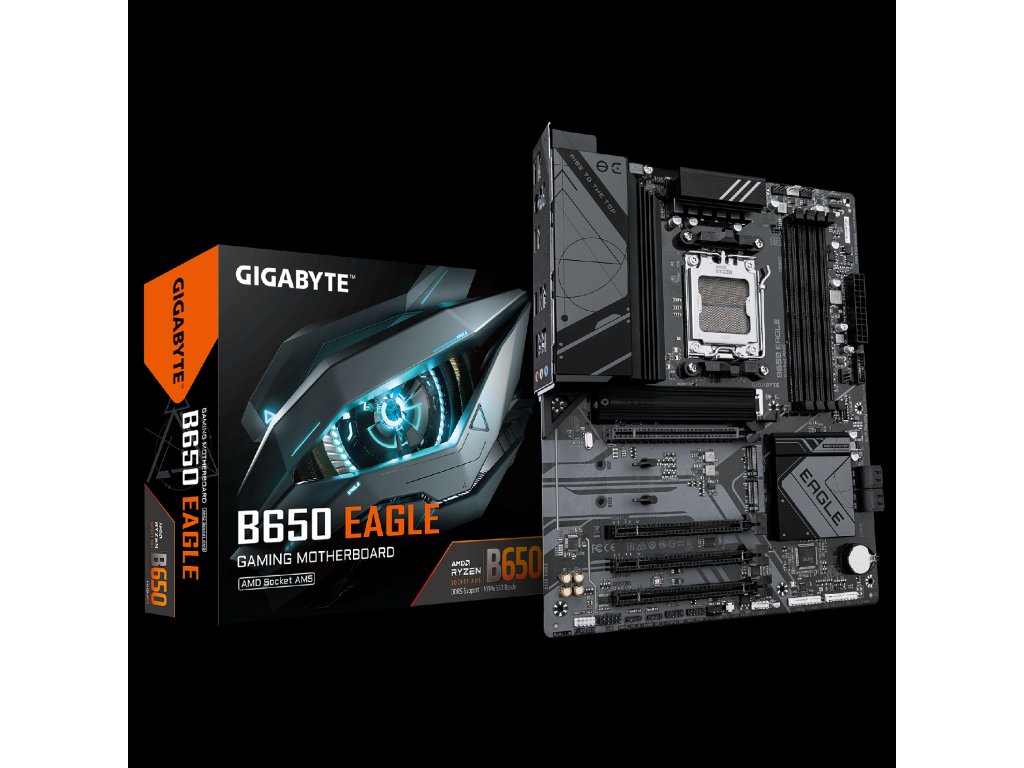 GIGABYTE B650 EAGLE * Smart Fan 6 * Q-Flash Plus Chipset: AMD B650 Rozměrový formát: ATX (305x244mm) Podpora pro procesory: AMD Ryzen™ řady 8000/7000 Patice procesoru: AM5 Paměť: * 4x DIMM patice podporující až 192GB (kapacita 48GB single DIMM), DDR5 7600(OC)/7200(OC)/7000(OC)/6800(OC)/6600(OC)/6400(OC)/6200(OC)/6000(OC)/5600(OC)/5200/4800/4400MT/s paměťové moduly * dvoukanálová architektura paměti * podpora pro AMD EXtended Profiles for Overclocking (AMD EXPO™) a podpora paměťových modulů Extreme Memory Profile (XMP) Grafické výstupy: grafické specifikace se mohou lišit v závislosti na podpoře CPU * 1x DisplayPort 1.4 * 1x HDMI® 2.1 Zvuková karta: kodek Realtek 7.1 Surround Sound High Definition Audio CODEC Ethernet: Realtek® GbE LAN Rozšiřující sloty: * 1x PCI Express x16 (PCIEX16) * 3x PCI Express x16, podpora PCIe 3.0 x1 RAID řadič: podpora pro RAID 0/1/10 pro úložná zařízení NVMe SSD a SATA Úložný prostor: celkem podporuje 3 sloty M.2 a 4 porty SATA 6Gb/s * 1x M.2 (M2A_CPU), integrovaný v CPU, podpora Socket 3, M key, typ 25110/2580 SSD * 1x M.2 (M2B_CPU), integrovaný v CPU, podpora Socket 3, M key, typ 22110/2280 SSD * 1x M.2 (M2C_SB), integrovaný v čipsetu, podpora Socket 3, M key, typ 22110/2280 PCIe 4.0 x4/x2 SSD * 4x port SATA 6Gb/s USB: Zadní USB (celkem 9 portů) * 1x USB typ-C®, s podporou USB 3.2 Gen 1 * 2x USB 3.2 Gen 2 typ-A (červený) * 6x USB 2.0/1.1 Přední USB (celkem 9 portů) * 1x USB typ-C® konektor - podpora USB 3.2 Gen 1 * 1x USB 3.2 Gen 1 header - podpora dalších 2 portů USB 3.2 Gen 1 * 3x USB 2.0/1.1 header - podpora dalších 6 portů USB 2.0/1.1 Porty na zadním panelu: * 1x DisplayPort * 1x HDMI * 1x PS/2 pro klávesnici/myš * 2x SMA anténní konektor (2T2R) * 1x USB typ-C®, s podporou USB 3.2 Gen 1 * 2x USB 3.2 Gen 2 typ-A (červený) * 6x USB 2.0/1.1 * 1x RJ-45 * 3x audio jack Interní porty: Napájení * 1x 24-pin ATX hlavní napájecí konektor * 1x 8-pin ATX 12V napájecí konektor Související s ventilátorem a chlazením * 1x CPU fan header * 1x CPU fan/water cooling pump header * 2x system fan header * 1x system fan/water cooling pump header Související s úložištěm * 3x M.2 slot (Key M) * 4x SATA 6Gb/s port USB * 1x USB typ-C® header, s podporou USB 3.2 Gen 1 * 1x USB 3.2 Gen 1 header * 3x USB 2.0/1.1 header Ostatní * 3x adresovatelný RGB Gen2 LED strip header * 1x RGB LED strip header * 1x front panel header * 1x front panel audio header * 1x Trusted Platform Module header (pouze pro modul GC-TPM2.0 SPI/GC-TPM2.0 SPI 2.0/GC-TPM2.0 SPI V2) * 1x tlačítko Q-Flash Plus * 1x serial port header * 1x Clear CMOS jumper BIOS: 1x 256Mb flash, AMI UEFI BIOS, PnP 1.0a, DMI 2.7, WfM 2.0, SM BIOS 2.7, ACPI 5.0 Odkaz na stránku výrobce: https://www.gigabyte.com/Motherboard/B650-EAGLE#kfDodatočné parametre