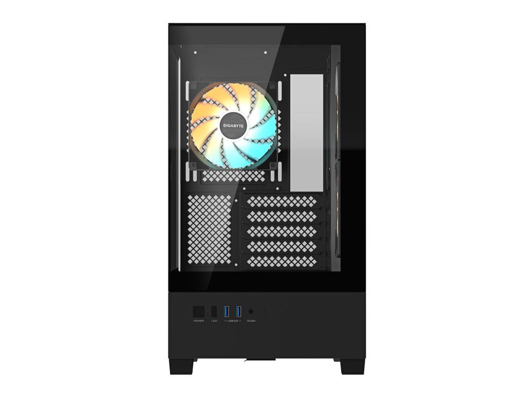 GIGABYTE C201 PANORAMIC * Optimalizovaný design proudění vzduchu * Boční panel z tvrzeného skla plné velikosti * Dva porty USB 3.0 na předním I/O * Podpora radiátorů až do 360 mm * Odnímatelné prachové filtry * Součástí balení jsou 3 ARGB ventilátory Typ: Mid Tower Podporuje základní desky: Mini ITX/Micro ATX Počet rozšiřujících slotů: 5 Pole pro disková úložiště: * 2x 3,5“ * 1x + 2x (místo 3,5'' disku) 2,5'' Externí porty: * 2x USB 3.0 * 1x Audio vstup a výstup (podporuje HD Audio) Podpora pro přídavné chlazení * horní: chladič max 360mm, ventilátor 3x 120mm/2x 140mm * boční: chladič max 240mm, ventilátor 2x 120mm * zadní: chladič max 140mm, ventilátor 1x 120mm/1x 140mm * kryt zdroje: ventilátor 3x 120mm Předinstalované ventilátory * boční: 2x 120mm (ARGB) * zadní: 1x 120mm (ARGB) Maximální výška chladiče CPU: 190mm Maximální délka PSU: 250mm Maximální délka GPU: 410mm RGB osvětlení: Ano (podpora RGB Fusion) Typ zdroje: ATX Prachové filtry: nahoře, dole, na boku Materiál: ocel, plast, sklo Barva: černá Rozměry: 431*242*430 mm Hmotnost: cca 6,45 kg Odkaz na stránku výrobce: https://www.gigabyte.com/PC-Case/GB-C201P#kfDodatočné parametre