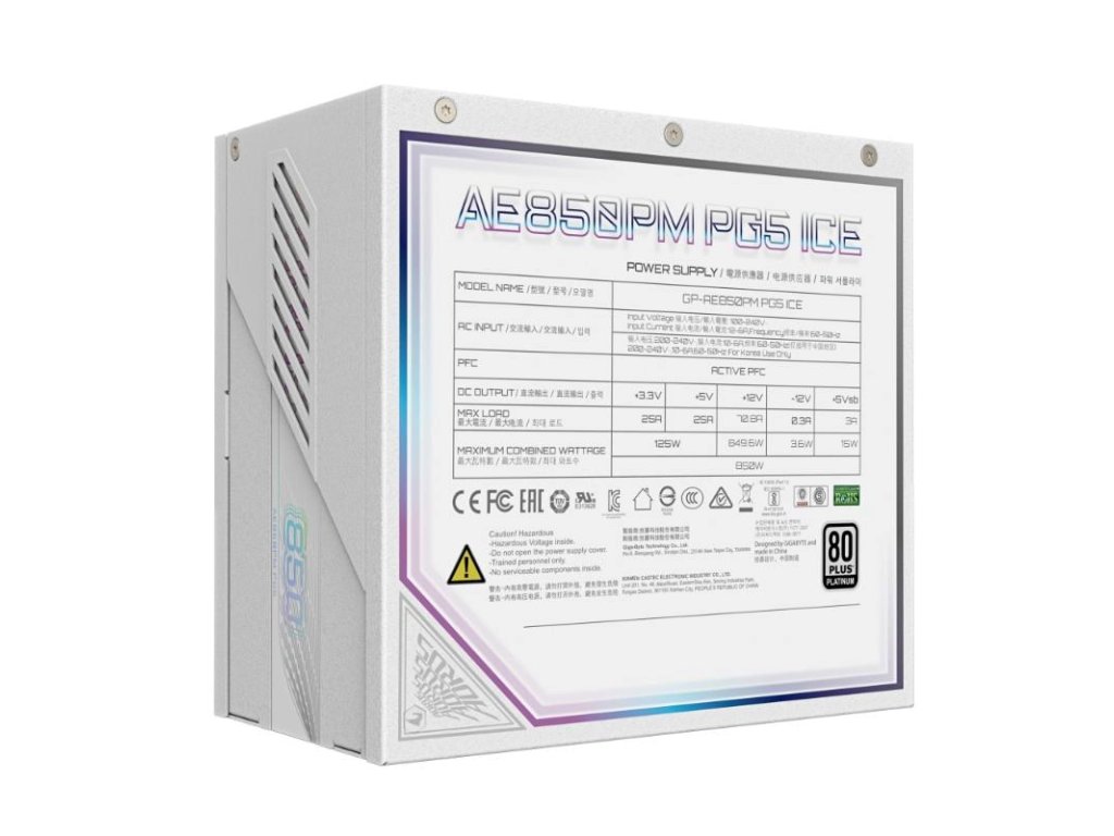 GIGABYTE zdroj AE850PM PG5, 850W, 80+ Platinum, 120mm fan, bílá GP-AE850PM PG5 ICE