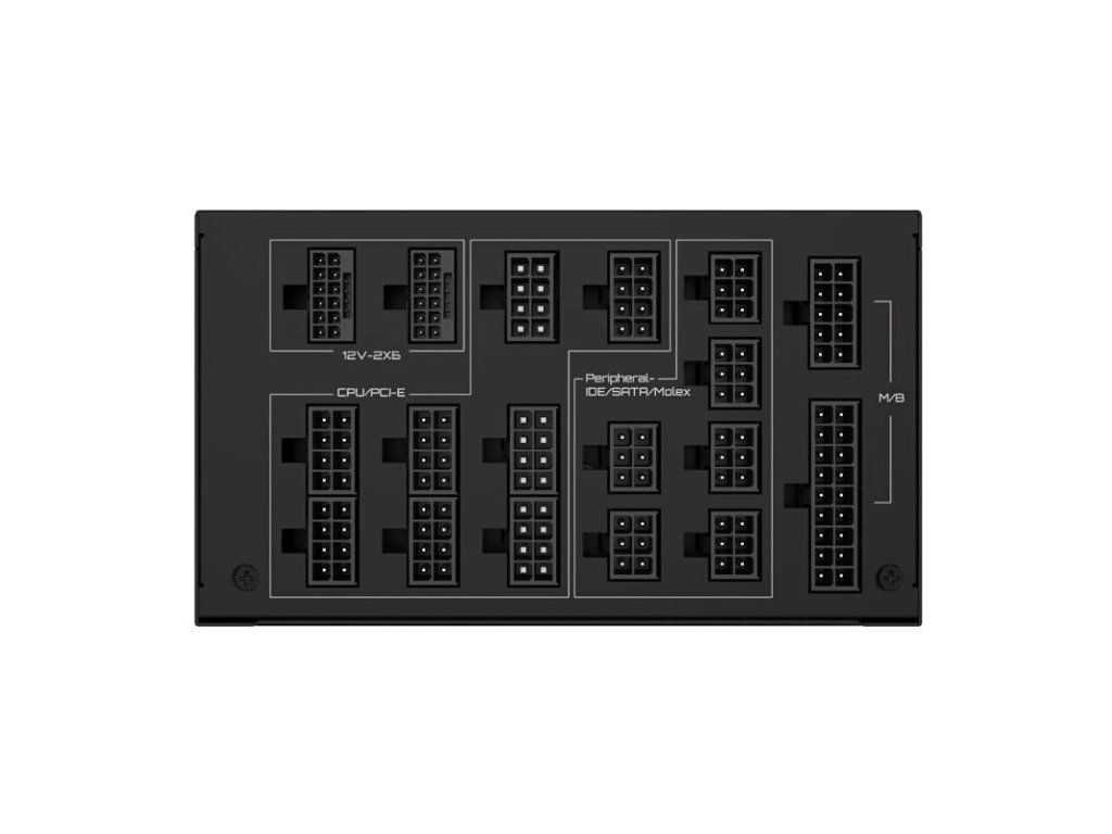 | Konektory: | 8pin CPU 1x, 8pin CPU 2x, PCIe 6-pin, PCIe 8-pin, PCIe 16-pin Gen5, SATA 15-pin, Molex, FDD |