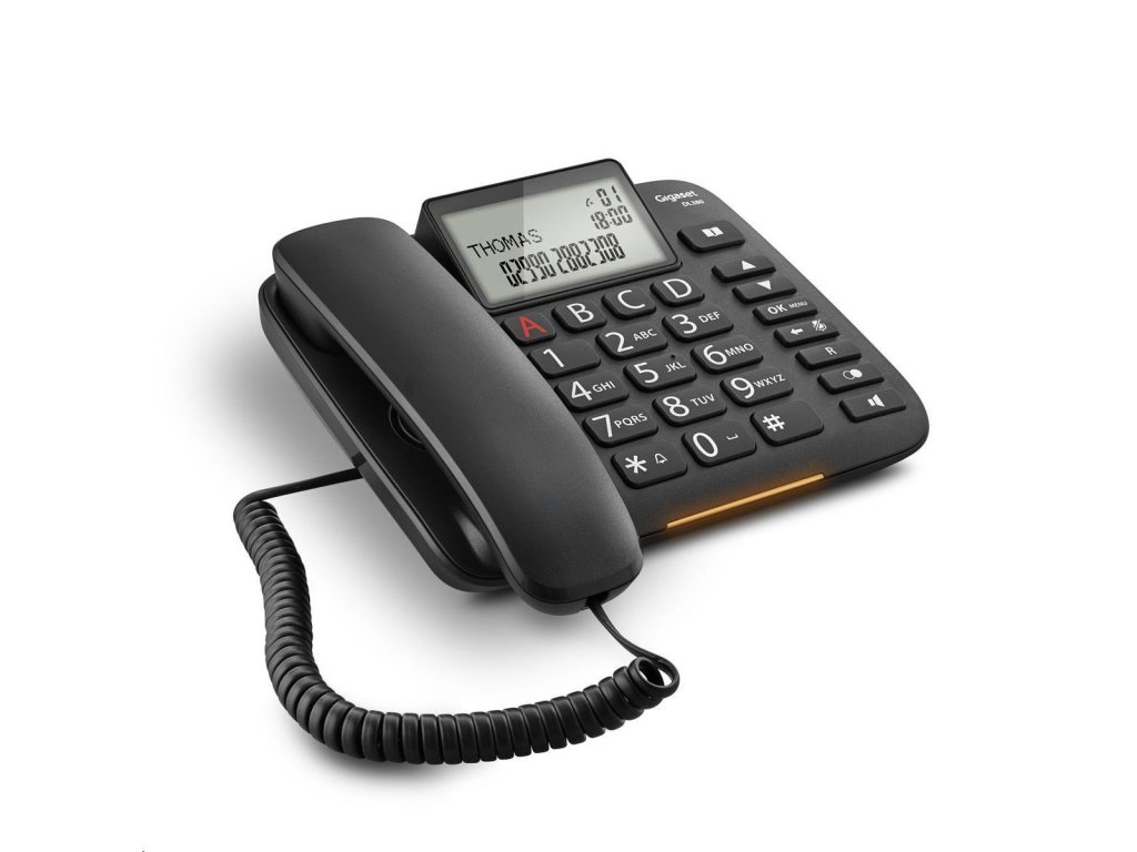 - 4 programovateľné tlačidlá priamej voľby (A-D) pre dôležité telefónne čísla