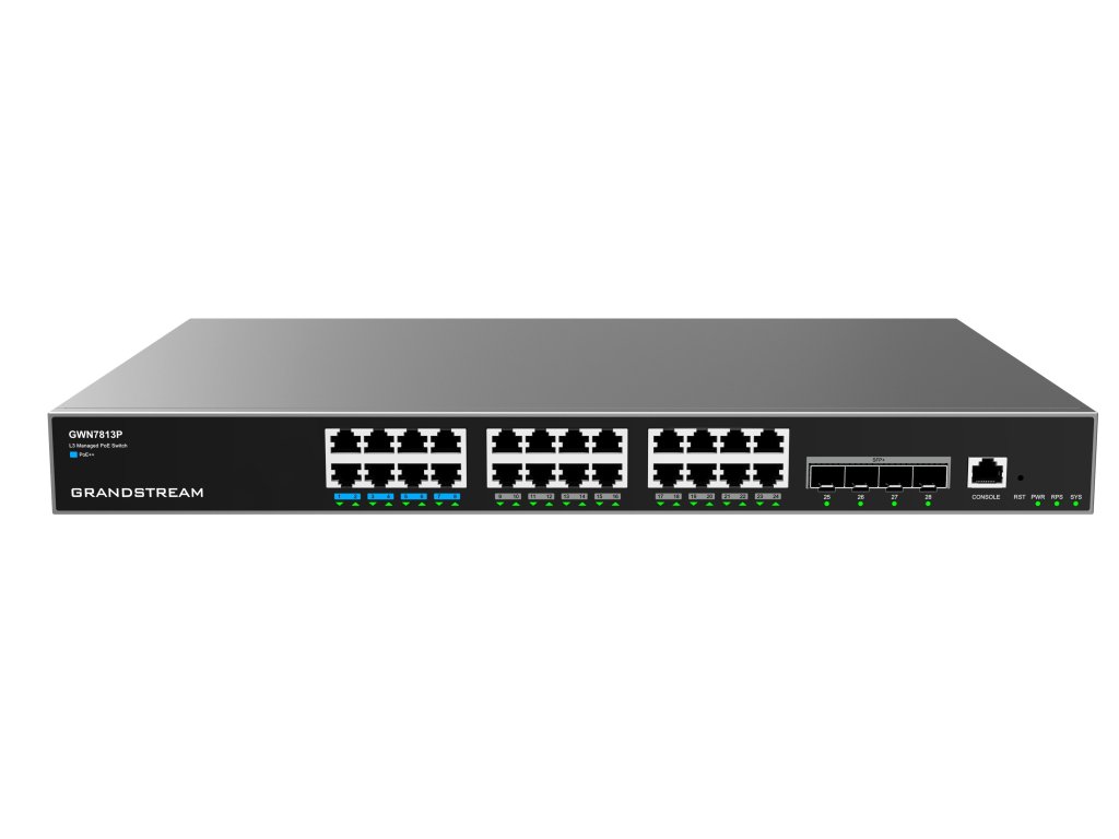 Grandstream GWN7813P Layer 3 Managed Network PoE Switch, 24 portov / 4 SFP+, VLAN, DHCP, Stacking GWN7813P