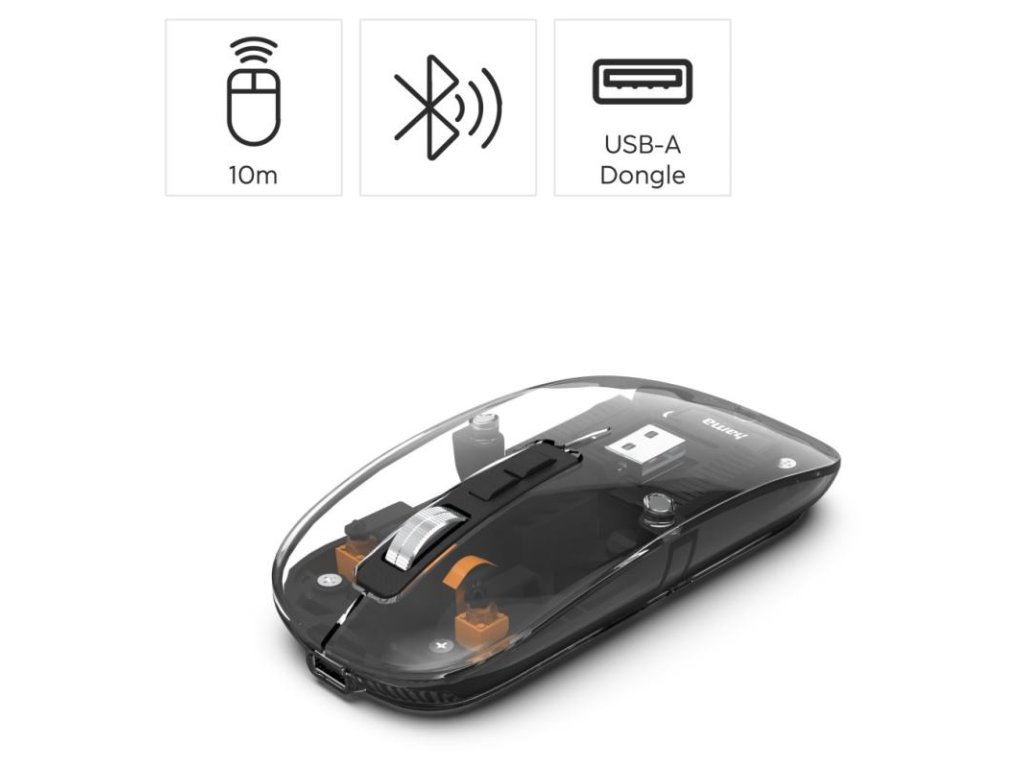 HAMA WM-600, Bezdrôtová myš, BT/RF, transparent 173094