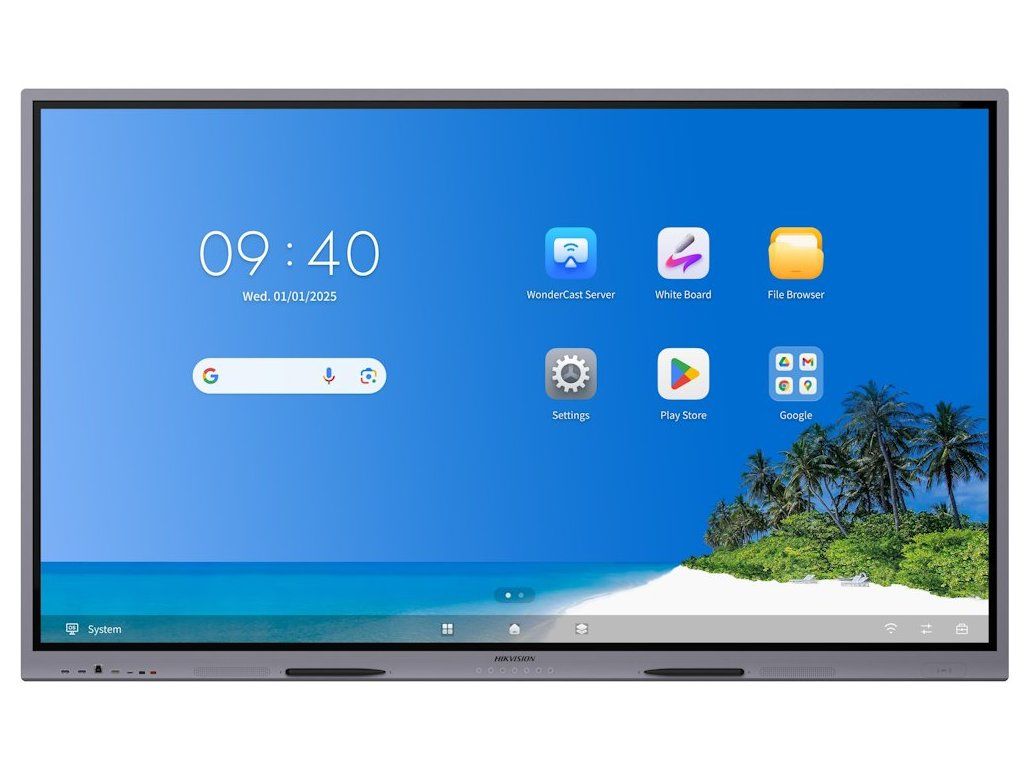 Interaktivní panel Hikvision DS-D5B75RB/EP kombinuje technologie dotykového ovládání, UHD zobrazení, zpracování videa, síťové komunikace a inteligentního řízení. Displej s úhlopříčkou 75" a rozlišením 4K UHD 3840 × 2160 px při 60 Hz využívá VA panel s jasem 400 cd/m² a kontrastem 5000 : 1. Povrchové sklo s tvrdostí 9H a 7 Mohs má antireflexní úpravu s 25% Haze pro optimální čitelnost při různém osvětlení.