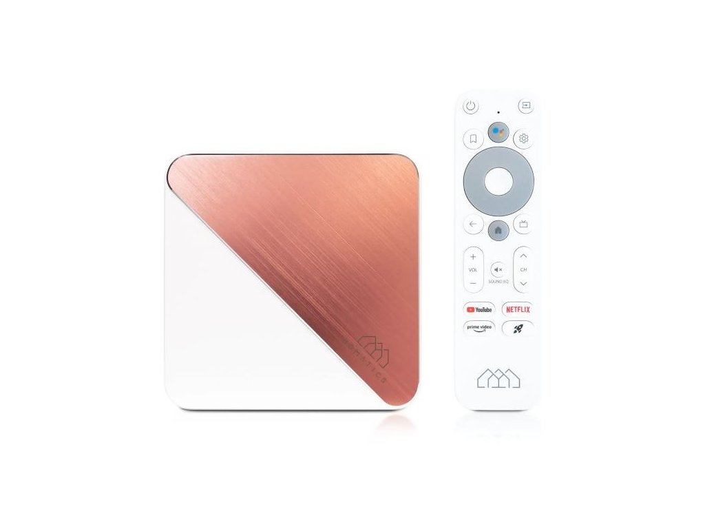 Obsahuje hlasového asistenta Google, predinštalovaný YouTube, Netflix, Google play obchod, Prime Video, zabudovaný chromecast a podporuje najpoužívanejšie aplikácie ako napríklad KODI, HBO GO, SledovanieTV, Antik TV, Magio GO, Skylink a ďalšie. Diaľkové ovládanie slúži aj ako mikrofón pre hlasového asistenta Google.