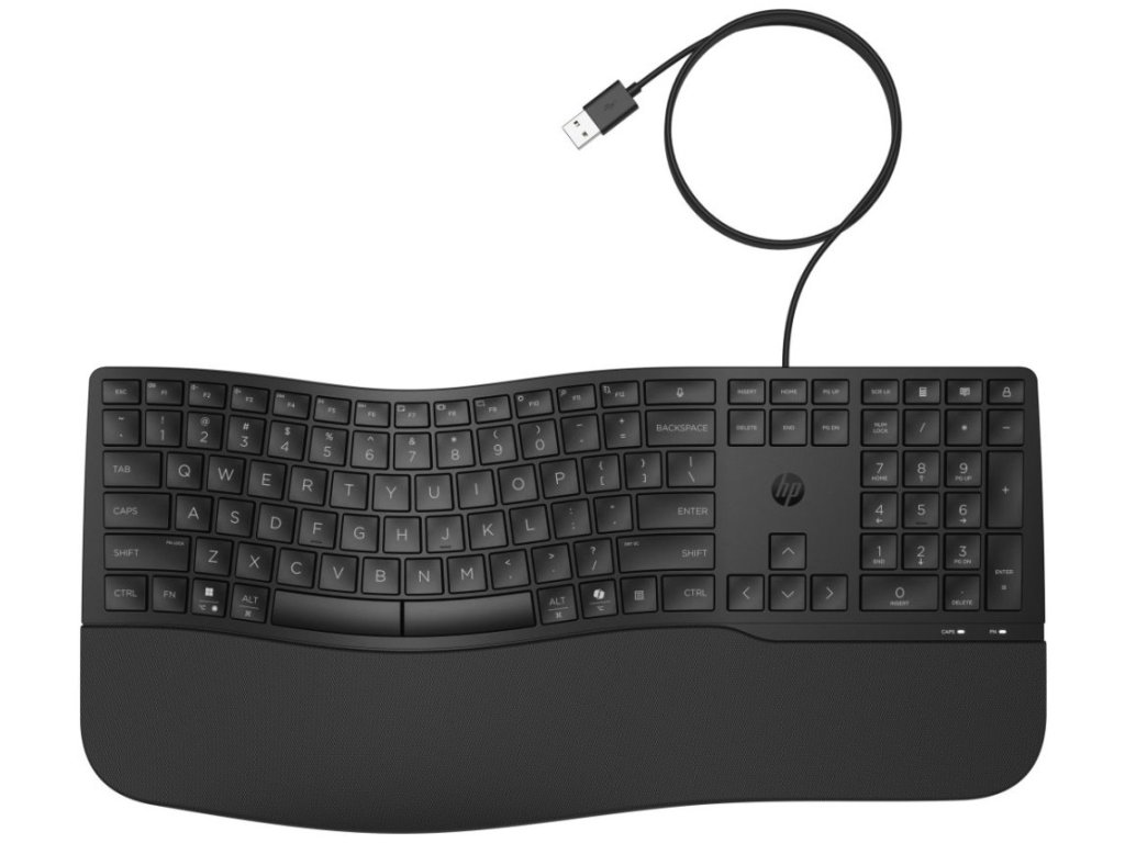 Bezdrátová klávesnice HP 485 Comfort je navržena pro podnikání a náročný firemní provoz. Díky pokročilému ergonomickému vlnitému designu podporuje příjemné psaní a činnost na PC. Přirozenější poloha rukou snižuje námahu při dlouhotrvajícím psaní. Klávesy umožňují tichý chod a využívání moderních funkcí – například chytrého asistenta Microsoft Copilot.