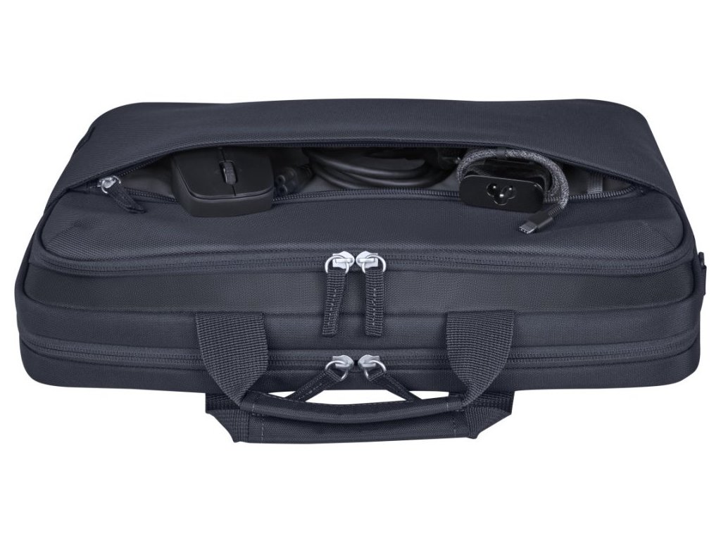 Pro notebook je vyhrazena polstrovaná přihrádka, která jej chrání před nárazy a poškrábáním. Další úložný prostor a kapsy pojme všechny nezbytnosti, které během dne potřebujete – například tištěné dokumenty, psací potřeby apod. Madlo a ramenní popruh vám umožní pohodlný a flexibilní transport.