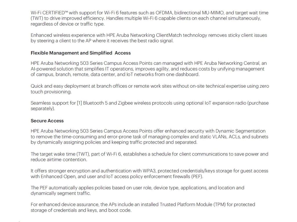 HPE Aruba Networking AP-503-RW Dual Radio 2x2:2 802.11ax Wi-Fi 6 Campus Access PointDodatočné parametre
