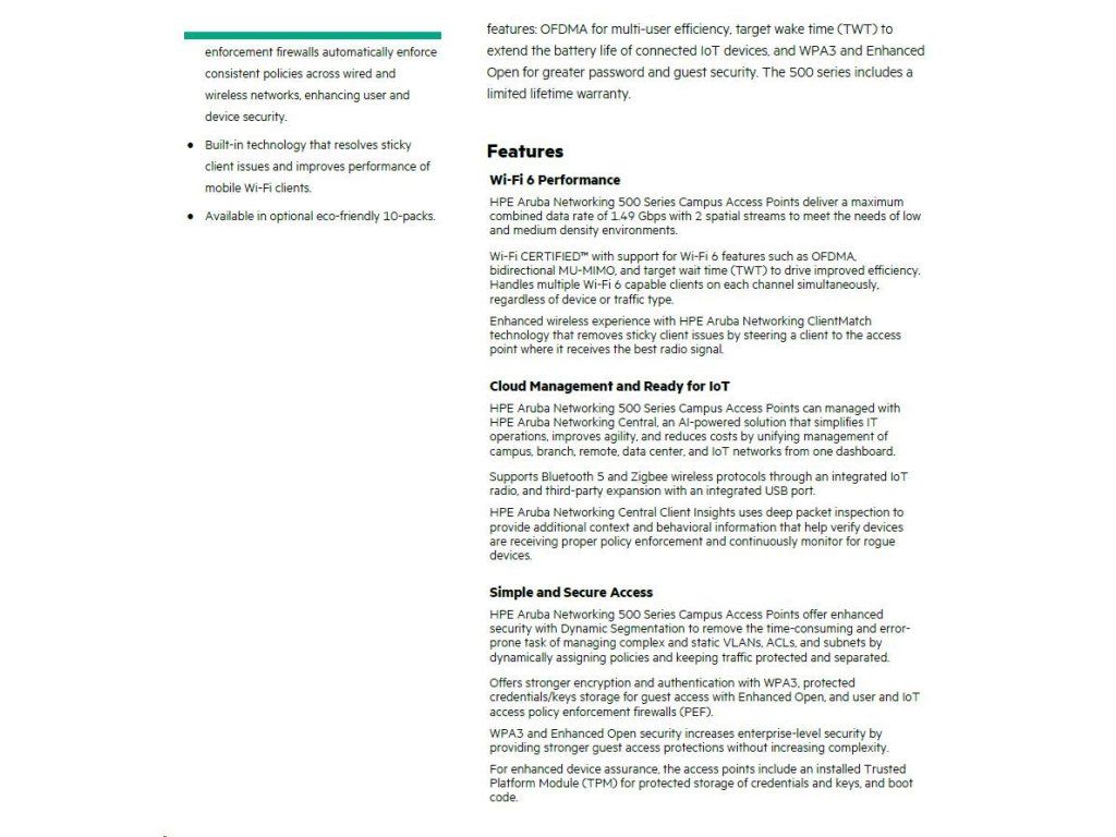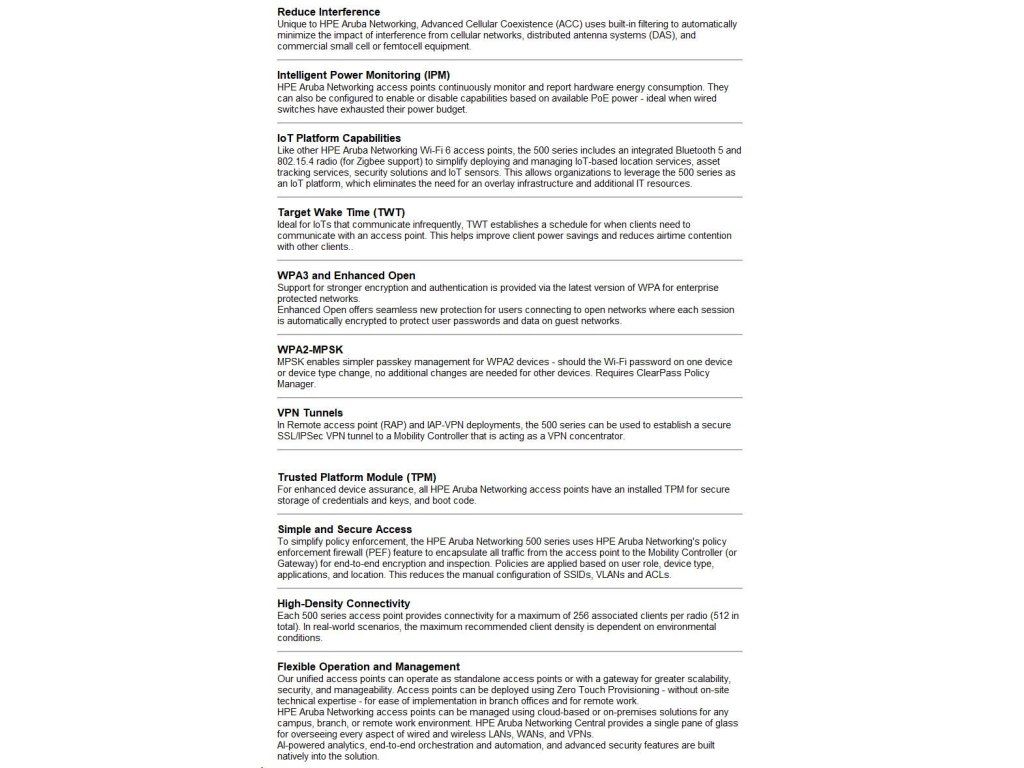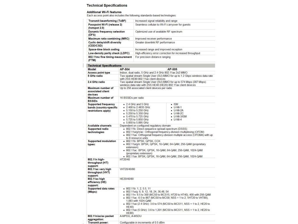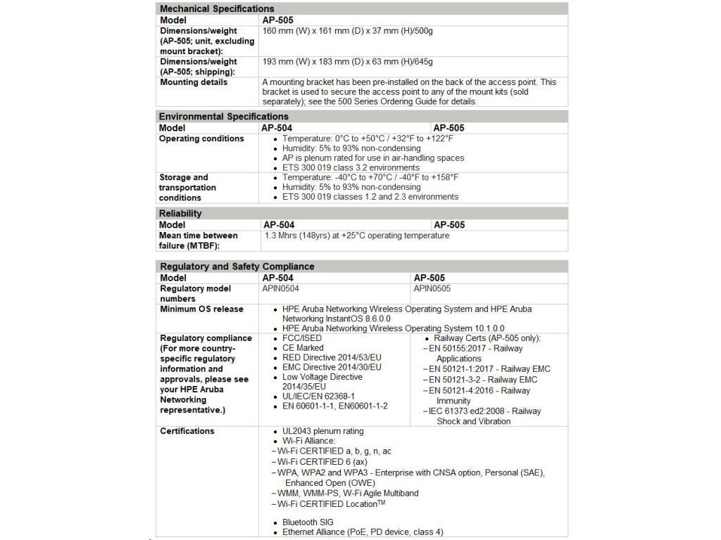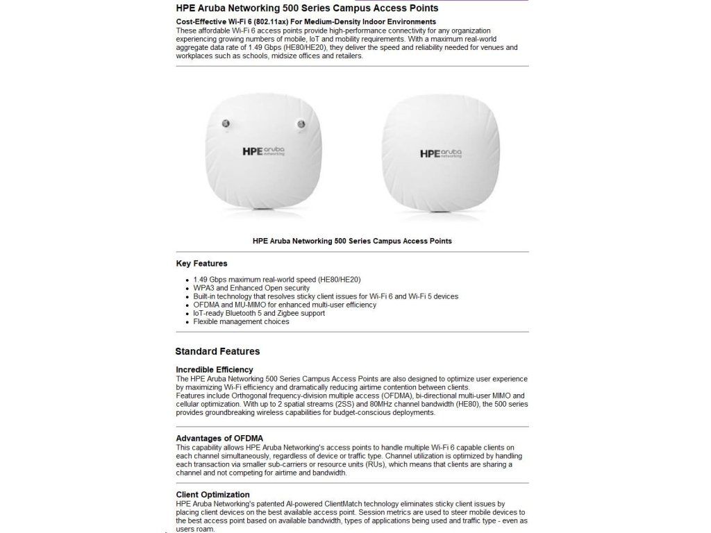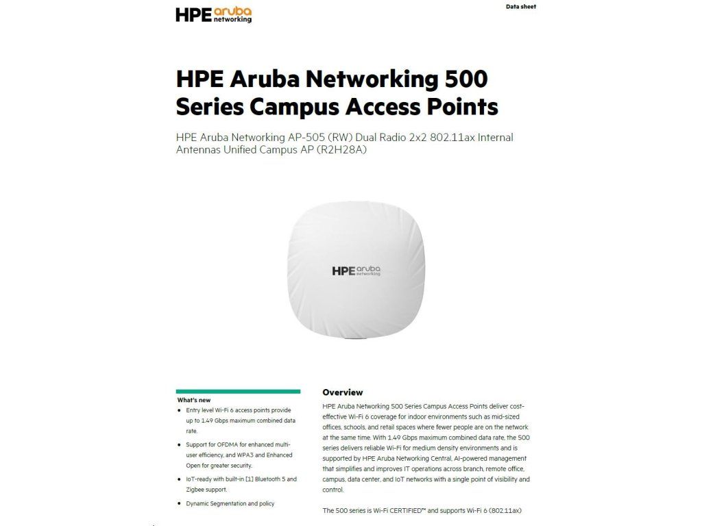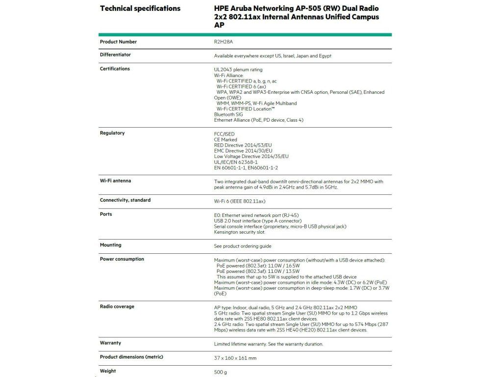 HPE Aruba Networking AP-505 (RW) Dual Radio 2x2 802.11ax Internal Antennas Unified Campus Access Point R2H28A RENEW R2H28AR
