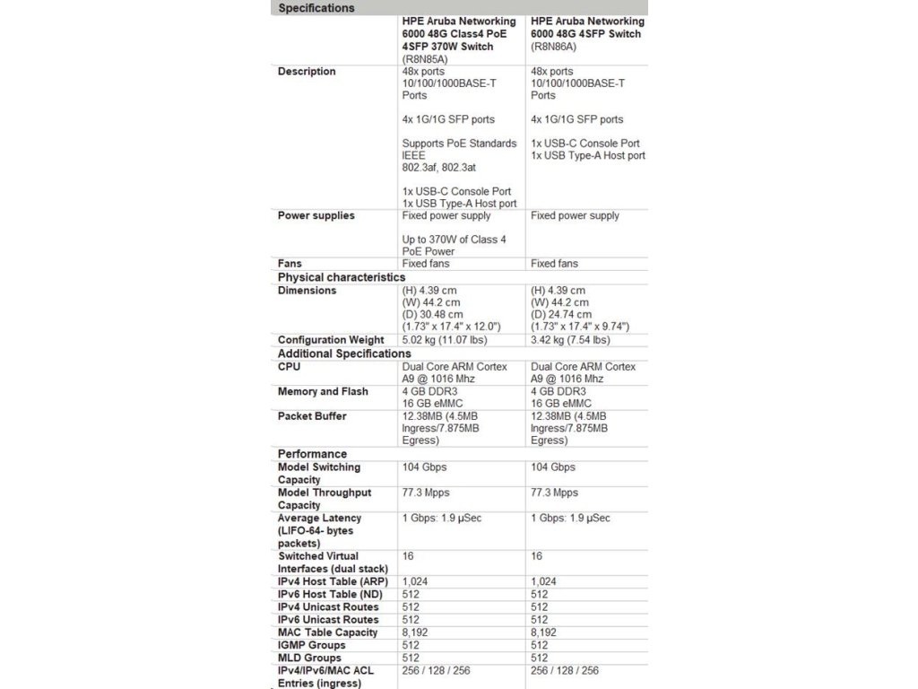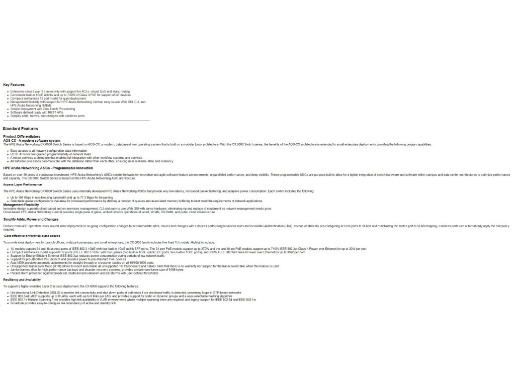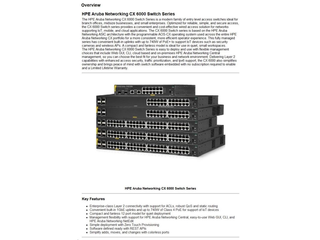 HPE Aruba Networking CX 6000 48G 4SFP Switch R8N86A R8N86A#ABB