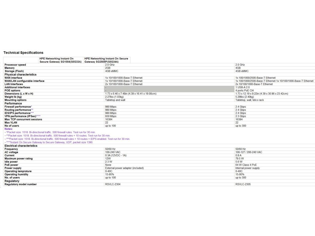 HPE Networking Instant On Secure Gateway 4-port Gigabit SG1004 S0G33A#ABB