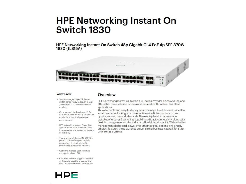HPE Networking Instant On Switch 48p Gigabit CL4 PoE 4p SFP 370W 1830 (JL815A) JL815A#ABB