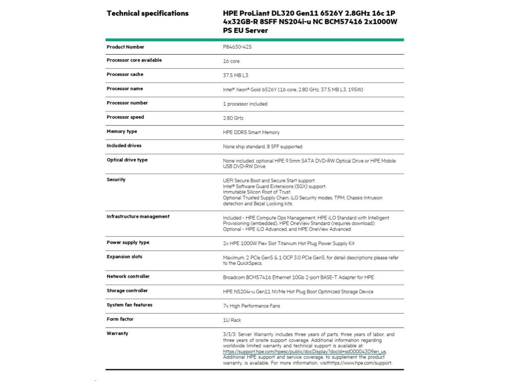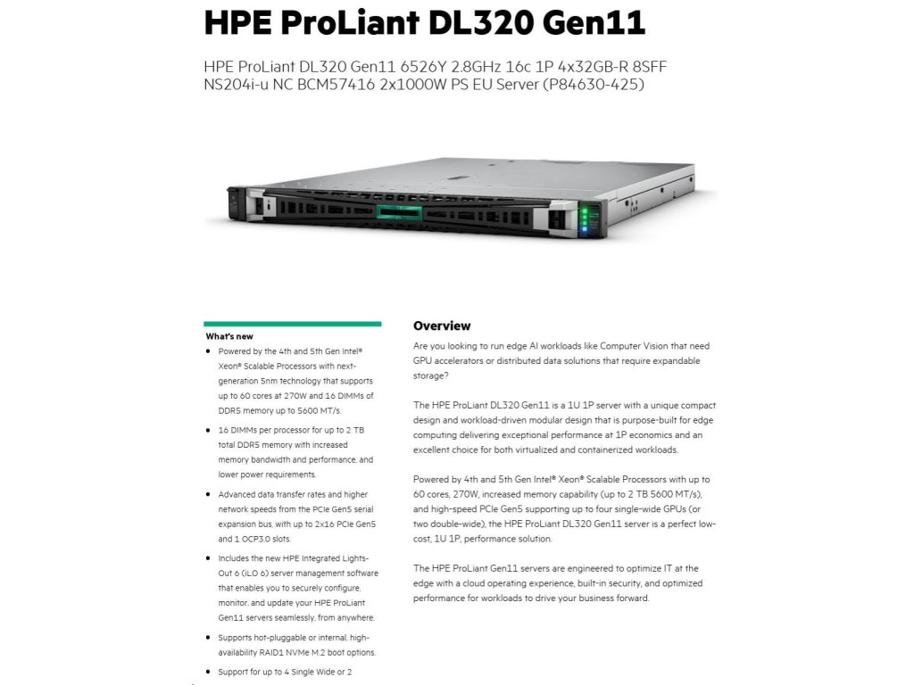 HPE PL DL320g11 6526Y (2.8/16C) 4x32G (p64706) 8SFF NS204(2x480Gm.2) VROC 2x1000W 2p10GT 7F Smart Choice P84630-425