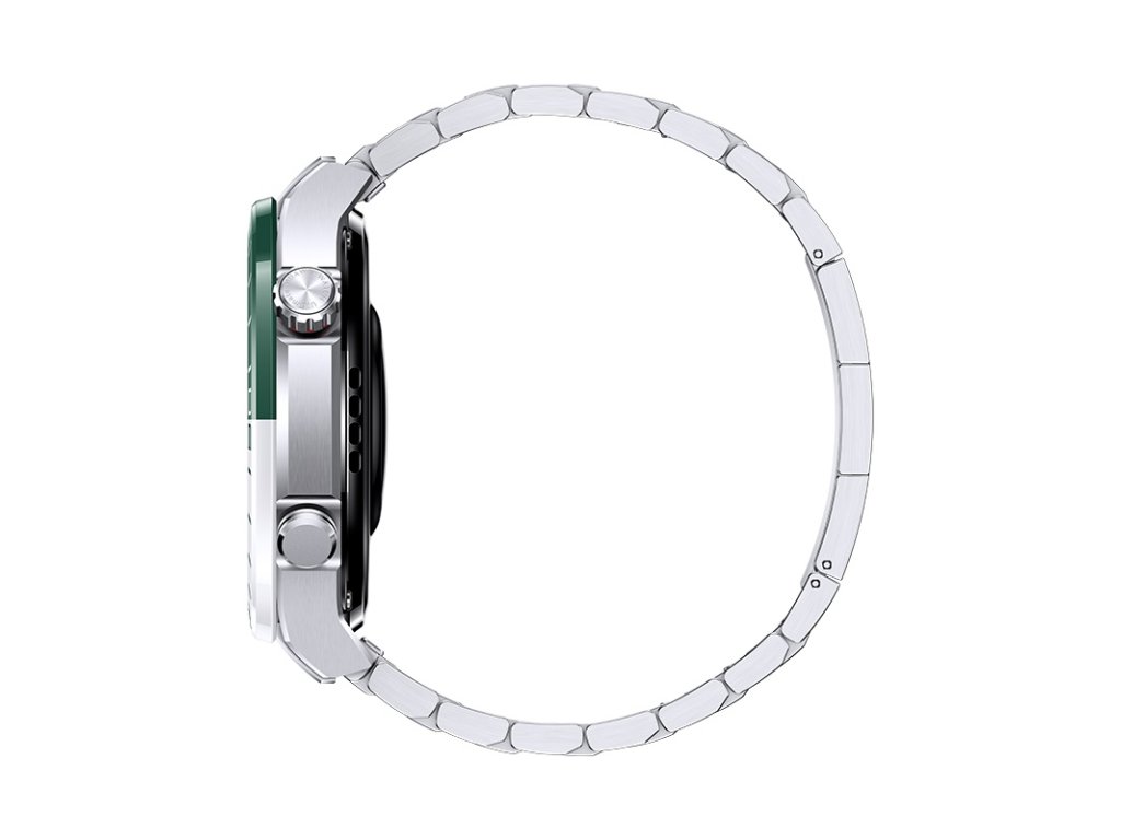 Smart sports watch *Materiál z tekutého kovu | Profesionální sportovní funkce | Mapy golfových hřišť *Titanový řemínek/tah (s dvoubarevným tkaným řemínkem a zeleným řemínkem HNBR jako součást balení výrobku) *Bezdrátové nabíjení Obvod zápěstí: 140–210 mm Voděodolnost: 10 ATM Displej: 1.5-inch LTPO AMOLED color circular screen Rozlišení: 466 x 466, PPI: 311 Senzory: *Čidlo akcelerometru *Čidlo gyroskopu *Čidlo magnetometru *Optické čidlo srdečního tepu *Čidlo barometru *Čidlo teploty *Čidlo hloubky *Čidlo okolního světla *Čidlo EKG Mikrofon: Supported GPS: Dual-band, five-constellation Připojení *Bluetooth 2,4 GHz, podporuje BT5.2 a BR + BLE *NFC Baterie: Lithium polymer battery, 530 mAh Doba nabíjení: 65 minutes Způsob nabíjení: Wireless charging cradle Výdrž baterie: 14 days for typical usage and 8 days for heavy usage Funkce: *100+ workout modes (running, cycling, swimming, mountain hiking, etc.) *Heart rate monitoring (single, real-time and smart) *SpO2/ Sleep/ Stress/ Breathing exercises *Bluetooth Calling *Cycle Calendar *Voice Assistant *Barometer and Compass Rozměry [mm]: 48.5 x 48.5 x 13.0 Hmotnost [g]: 76 g (excluding the strap)Dodatočné parametre