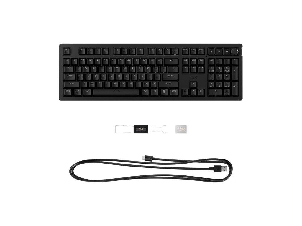 | Obsah balenia | HyperX Alloy Rise, odpojiteľný kábel USB-C, spínač klávesov/vyťahovač klávesov, Stručná úvodná príručka |