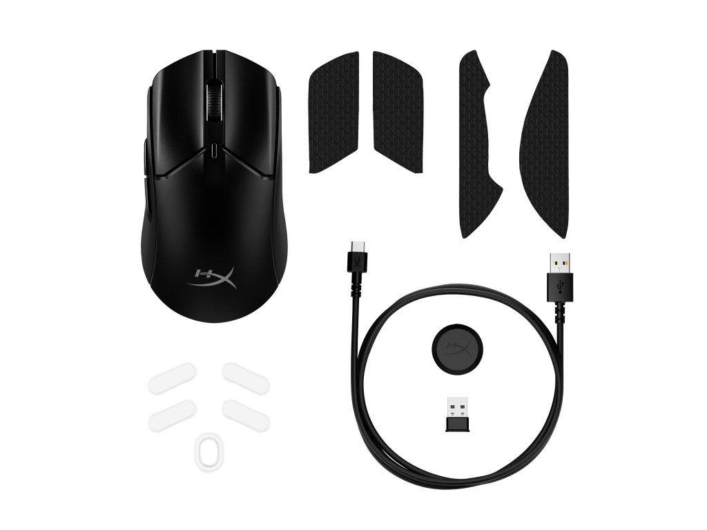 | Obsah balenia | Myš HyperX Pulsefire Haste 2, uchopenia HyperX, spodné plôšky s nízkym trením, kábel USB-C na USB-A, bezdrôtový prijímač USB, predlžovací adaptér USB, stručná úvodná príručka |