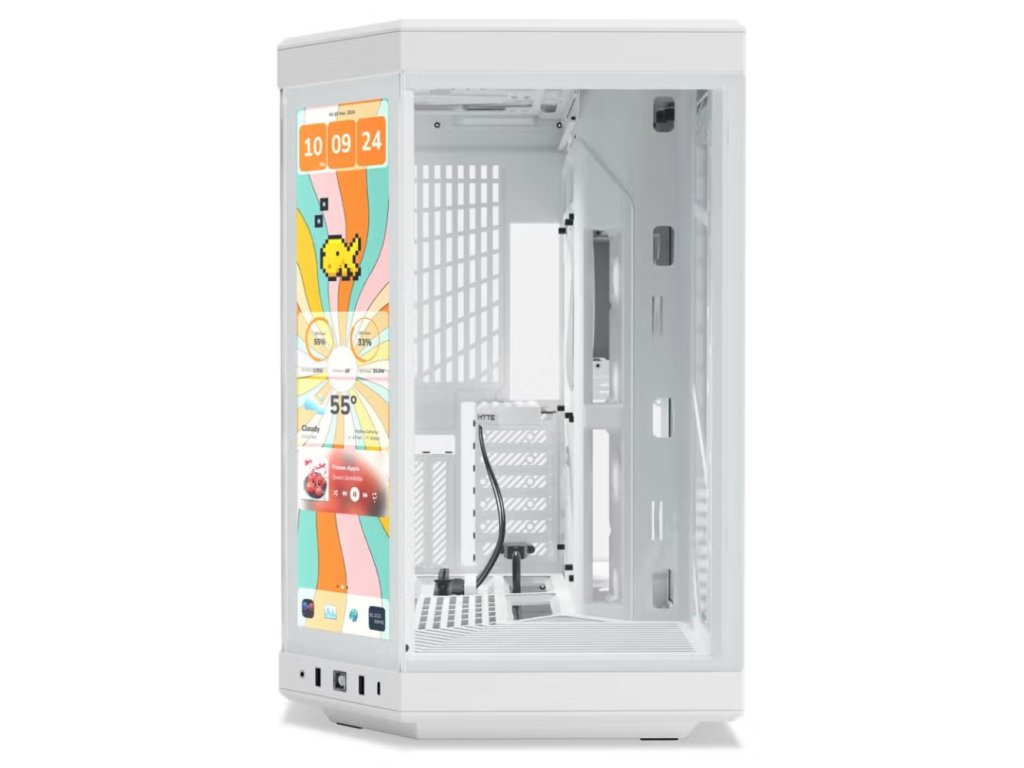 HYTE Y70 představuje revoluční přístup k počítačovým skříním, který kombinuje moderní estetiku s pokročilými funkcemi. Dominantou je integrovaný 14,9" IPS dotykový displej s rozlišením 682 × 2560 (2.5K) a 10bodovým multi-touch ovládáním, který umožňuje sledovat systémové informace a přizpůsobovat nastavení prostřednictvím softwaru HYTE Nexus.