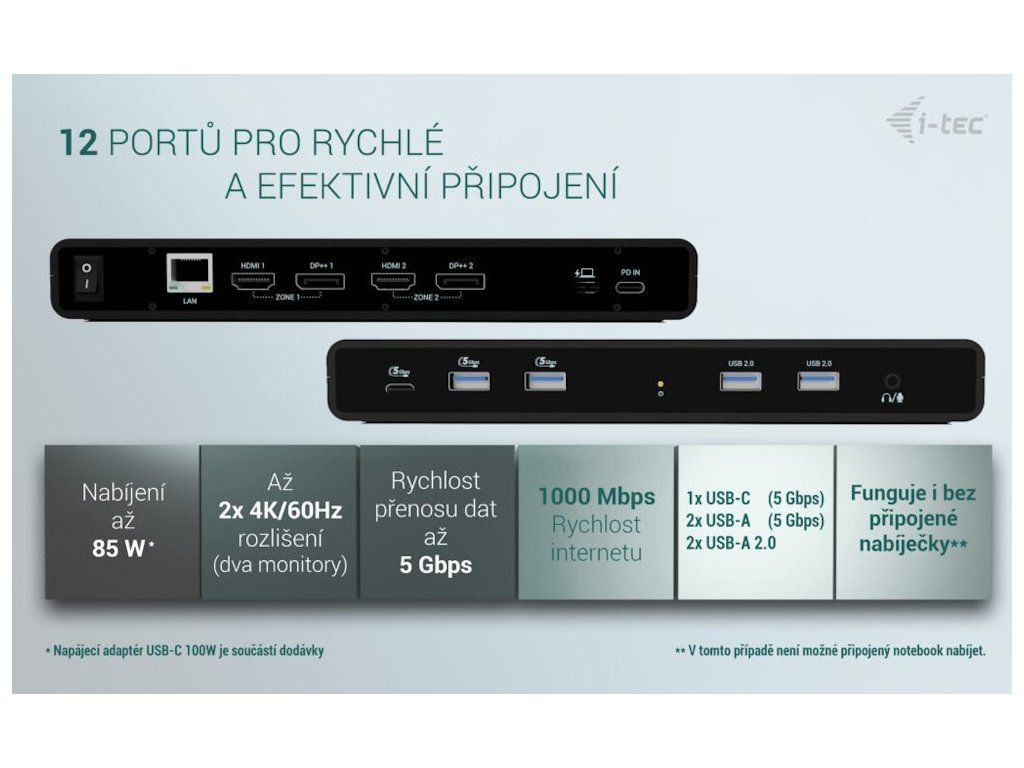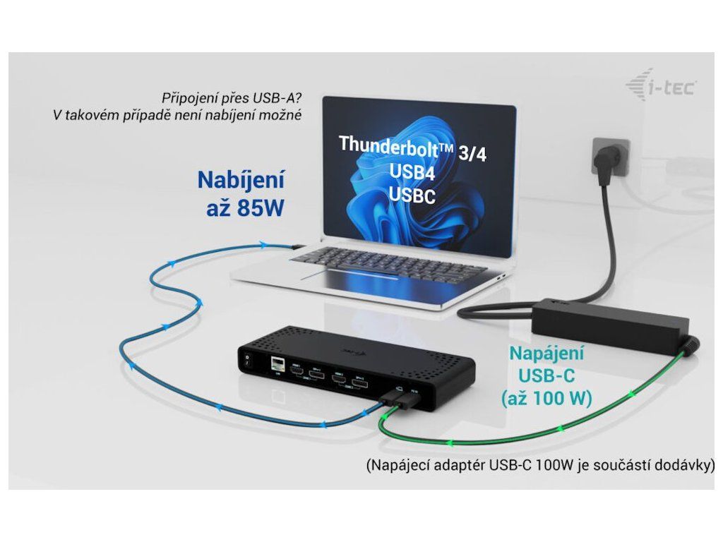 i-tec dokovací stanice Universal Dual 4K Display, Power Delivery 85W + i-tec USB-C nabíječka 100W CADUA4KDOCKPDB100