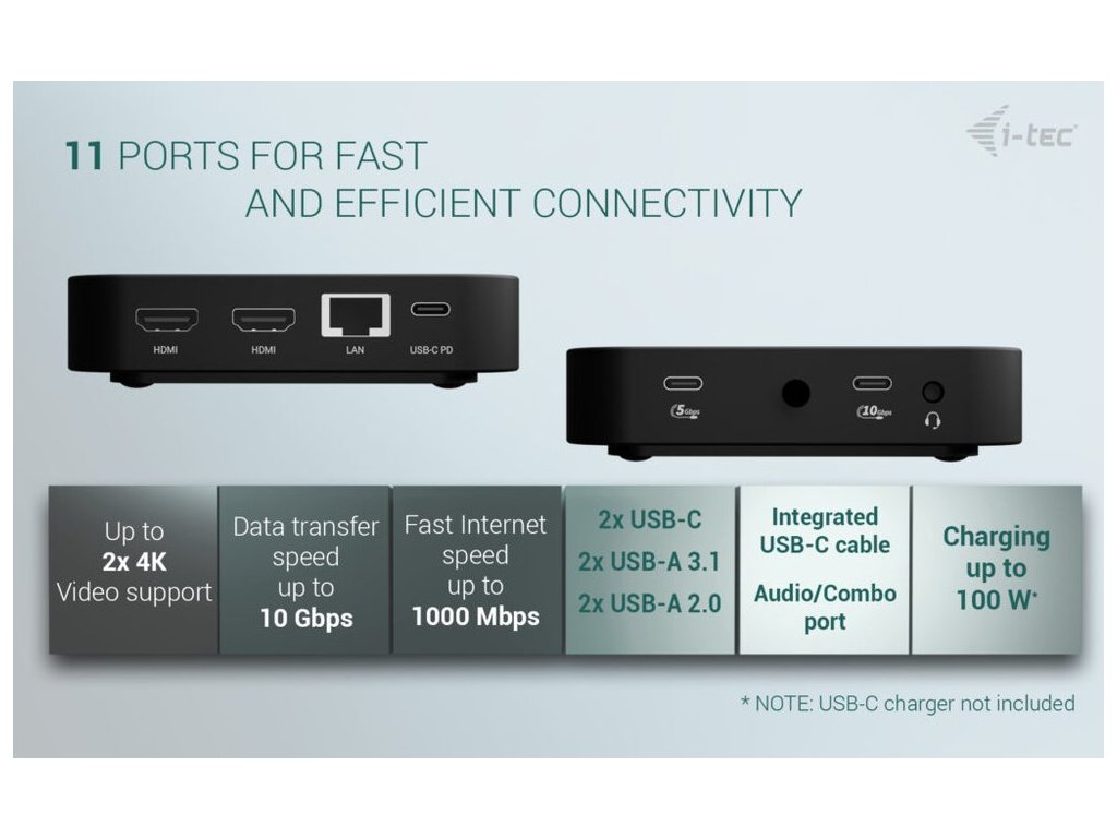 I-TEC USB-C Dual HDMI Dock 100 W – připojení bez omezení