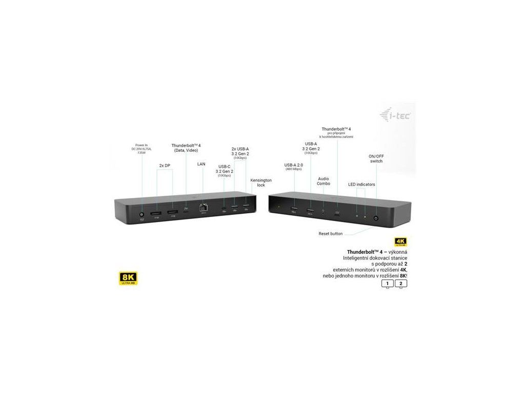 i-tec Thunderbolt 4 Intelligent Dual Display Docking Station, Power Delivery 90W TB4INTGDUAL4KDOCPD