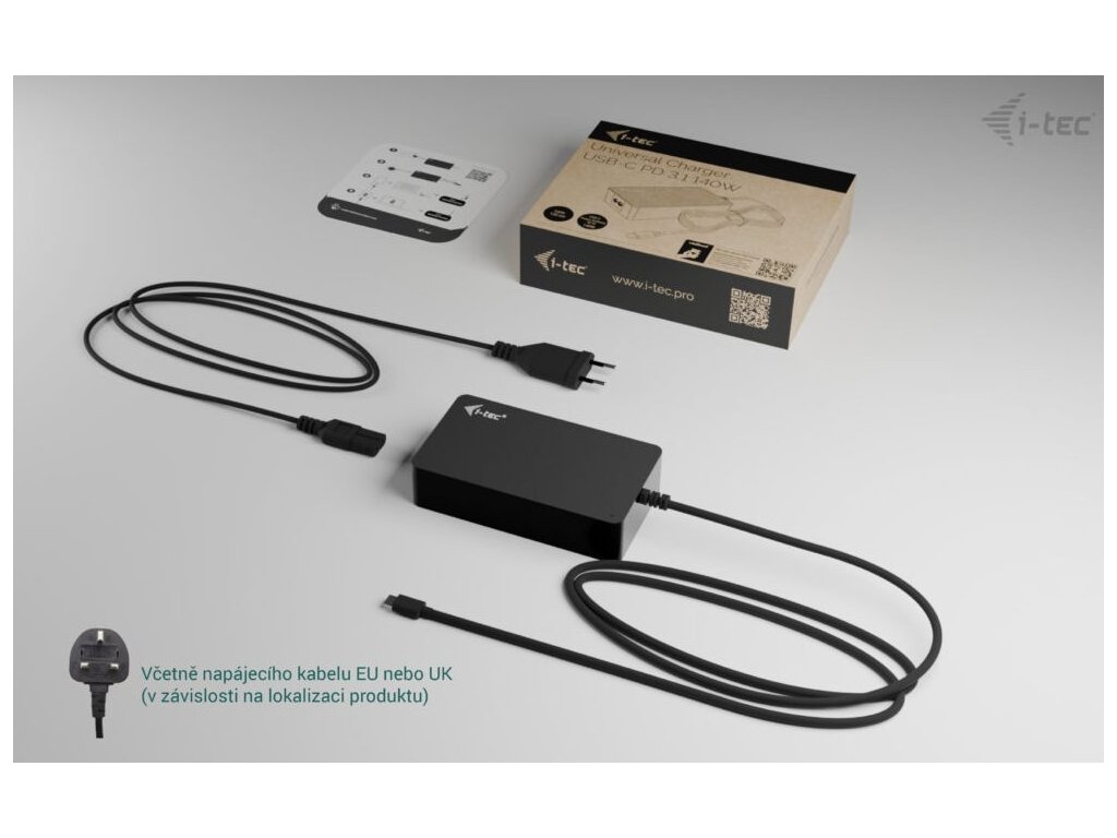 I-TEC univerzální nabíječka USB-C PD 3.1 140 WUniverzální napájecí adaptér je skvělou volbou pro napájení jakéhokoli notebooku nebo jiného zařízení vybaveného konektorem USB-C, který podporuje Power Delivery 3.1 s maximálním příkonem 140 W*. Napětí se nastavuje automaticky podle požadavků zařízení. Samozřejmostí je inteligentní ochrana proti proudovému přetížení, přepětí, zkratu a přehřátí.