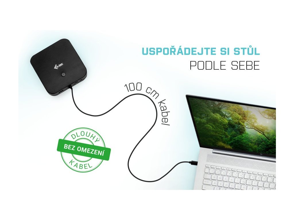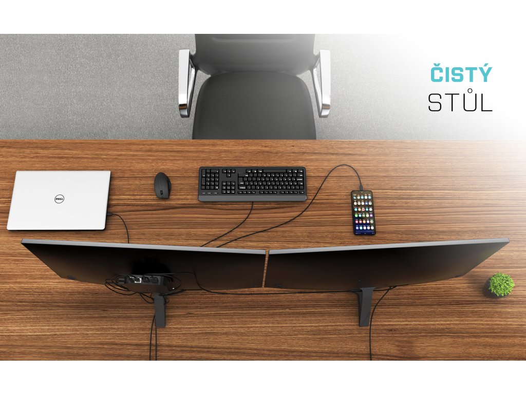 Kancelářská dokovací stanice USB-C, která podporuje až 2x externí monitor v rozlišení 4K. Stanice je kompatibilní s jakýmkoliv notebookem vybaveným portem USB-C nebo Thunderbolt 3. 6x USB port, spolehlivé a rychlé připojení do podnikové sítě díky integrovanému LAN portu a podpora instalace za monitor, to vše z této dokovací stanice dělá ideálního společníka pro profesionály. Samozřejmostí je podpora nabíjení vašeho notebooku či tabletu, a to až 100 W. Integrovaný nejnovější protokol DP 1.4 podporuje rovněž rozlišení 5K/60 Hz, což mohou ocenit i profesionální grafici, datoví analytici, filmoví editoři, případně milovníci videa ve vysokém rozlišení. Dokovací stanici si můžete zakoupit ve třech variantách: 1. bez přiloženého USB-C nabíjecího adaptéru (produktový kód C31HDMIDPDOCKPD) 2. s přiloženým adaptérem o výkonu 65 W (produktový kód C31HDMIDPDOCKPD65/UK) 3. s přiloženým adaptérem o výkonu 100 W (produktový kód C31HDMIDPDOCKPD100/UK) Poznámka: operační systém macOS nepodporuje technologii více obrazového video přenosu Multi Stream Transport (MST), což znamená, že v případě připojení k macOS bude na obou připojených monitorech promítnut stejný obraz. • Připojte až dva externí monitory 4K/30Hz • Power delivery: až 100 W • 1x HDMI, 1x DisplayPort • 3x USB 3.1, 1x USB-C 3.1 a 2x USB 2.0 vám umožní snadné připojení vašich USB zařízení a periferií. Gigabitový Ethernet RJ-45 poskytuje spolehlivé, robustní a vysokorychlostní internetové připojení s podporou 10/100/1000 Mbps rychlostí • Kombinovaný jack pro audio a mikrofon na předním panelu • Zámek Kensington zajistí ochranu proti zcizení, zejména v prostředí sdílených kanceláří či veřejně přístupných míst • Vypínač dokovací stanice umožní maximální úsporu elektrické energie • Dokovací stanice podporuje držák VESA pro inteligentní vertikální instalaci za monitor s VESA podporou • Podporuje Windows 10, macOS X, Android, ChromeOS a Linux Dokovací stanici lze používat i bez připojeného napájecího adaptéru. V takovém případě budou vždy funkční video výstupy, síťový port LAN (RJ-45), audio/mic a oba porty USB 2.0. Porty USB 3.0 a datový port USB-C však při zapojení zařízení s vyššími energetickými nároky (například SSD disky, zejména pak jednotky NVMe) nemusí fungovat. V takovém případě může dojít k vypnutí dokovací stanice. Pro využití všech portů a dosažení maximální rychlosti přenosu dat doporučujeme používat dokovací stanici s připojeným napájecím adaptérem. Poznámka: V případě připojení k zařízení s operačním systémem Android bude dokovací stanice fungovat výhradně s připojeným napájecím adaptérem. Specifikace • 1x integrovaný USB-C kabel pro připojení k zařízení (100 cm) • Technologie dokovací stanice: USB-C (MST) • Power Delivery: až 100 W • Video Porty: 1x HDMI, 1x DisplayPort (podporující DP++) • Rozlišení: > DP 1.2 HBR2: • 1 monitor – 1x HDMI › až 4K/30Hz • 1 monitor – 1x DisplayPort › až 4K/30Hz • 2 monitory – 1x DisplayPort + 1x HDMI › až 2x 1080p/60Hz* > DP 1.4 HBR3: • 1 monitor – 1x HDMI › až 4K/60Hz • 1 monitor – 1x DisplayPort › až 4K/60Hz • 2 monitory – 1x DisplayPort + 1x HDMI › až 2x 1440p/60Hz* • 2 monitory – 1x DisplayPort + 1x HDMI › až 2x 4K/30Hz* > DP 1.4 HBR3 DSC: • 1 monitor – 1x HDMI › až 4K/60Hz • 1 monitor – 1x DisplayPort › až 5K/60Hz • 2 monitory – 1x DisplayPort + 1x HDMI › až 2x 4K/60Hz* • 1x USB-C port Gen. 2 (pouze pro data) • 1x USB-C port gen. 2 + PD (data + power delivery) • 3x USB 3.0 port • 2x USB 2.0 port • 1x Ethernet GLAN RJ-45 port (Realtek RTL8153) • 1x 3,5 mm Combo Audio port • LED indikace • Přepínač ON/OFF pro zapnutí a vypnutí dokovací stanice • Podpora pro Kensington lock • OS: Windows 10, macOS, Android, Chrome OS a Linux s nejnovějšími aktualizacemi • Rozměry produktu: 113 x 113 x 40 mm • Hmotnost produktu: 245 g • Rozměry balení: 338 x 150 x 55 mm • Hmotnost balení: 458 g * Operační systém macOS nepodporuje technologii více-obrazového video přenosu Multi Stream Transport (MST), což znamená, že v případě připojení k macOS bude na obou připojených monitorech promítnut stejný obraz. Hardwarové požadavky: • Zařízení s volným USB-C nebo Thunderbolt 3 Požadavky pro funkci Power Delivery: • Zařízení s volným USB-C či Thunderbolt 3 portem s podporou „Power Delivery“ Požadavky pro video výstup: • Zařízení s volným USB-C portem s podporou “DisplayPort Alternate Mode” či portem Thunderbolt 3 • Pro využití vyšších obnovovacích frekvencí než 60 Hz je zapotřebí monitor, který tyto obnovovací frekvence podporuje Operační systém: • Windows 10, macOS*, Android, Chrome OS a Linux s nejnovějšími aktualizacemi * Operační systém macOS nepodporuje technologii více-obrazového video přenosu Multi Stream Transport (MST), což znamená, že v případě připojení k macOS bude na obou připojených monitorech promítnut stejný obraz. Poznámka: V případě připojení k zařízení s operačním systémem Android bude dokovací stanice fungovat výhradně s připojeným napájecím adaptérem. Obsah balení • Produkt • Manuál • Nabíjecí adaptér USB-C 65W (pouze ve variantě s produktovým číslem C31HDMIDPDOCKPD65/UK) • Nabíjecí adaptér USB-C 100W (pouze ve variantě s produktovým číslem C31HDMIDPDOCKPD100/UK)Dodatočné parametre