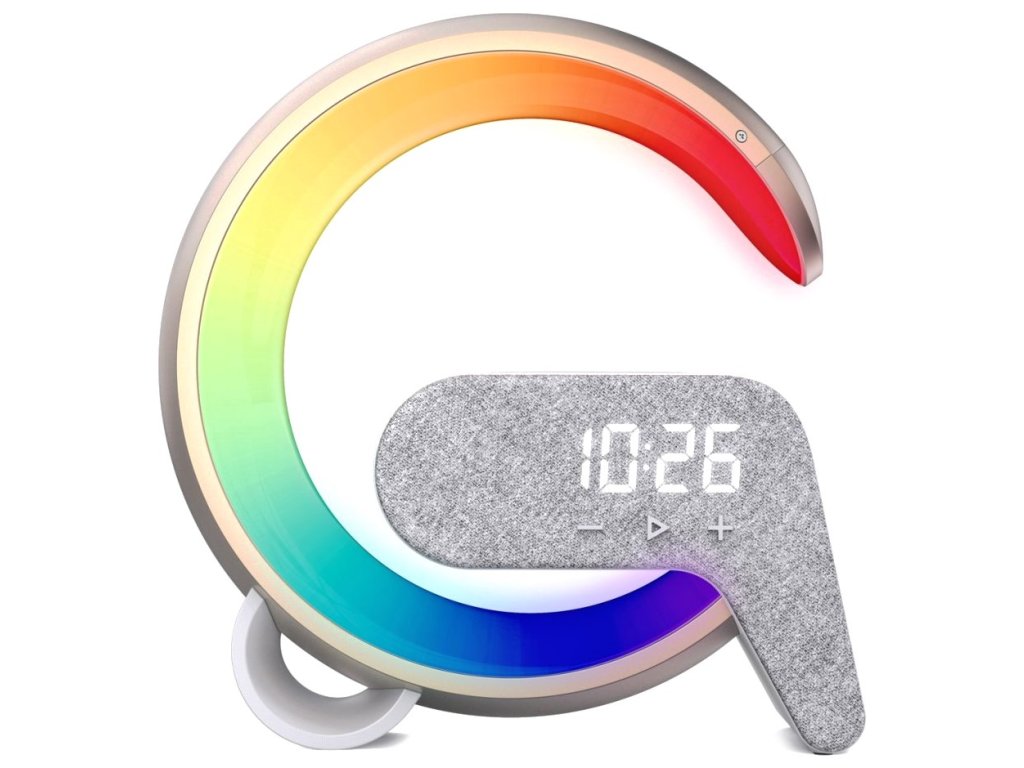 Netradiční LED stolní lampička s praktickým digitálním displejem a s efektním RGB podsvícením. Nabízí teplý odstín světla a plynulé stmívání. Tato lampička je ideální do dětských pokojíčků díky možnosti přehrávání šesti různých přírodních zvuků či bílého šumu k večernímu zklidnění. LED displej disponuje možností ztlumení i úplného vypnutí. Pro přehrávání hudby z mobilního zařízení bez nutnosti připojení kabelu je připraven Bluetooth reproduktor. K dispozici je navíc i duální budík pro dva různé časy probuzení, bezdrátová nabíječka standardu Qi a nabíjecí USB port pro nabíjení mobilních telefonů.