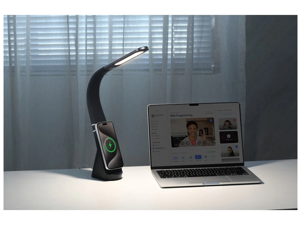 Multifunkční LED stolní lampička s magnetickým bezdrátovým nabíjením pro moderní domácnost a kancelář.