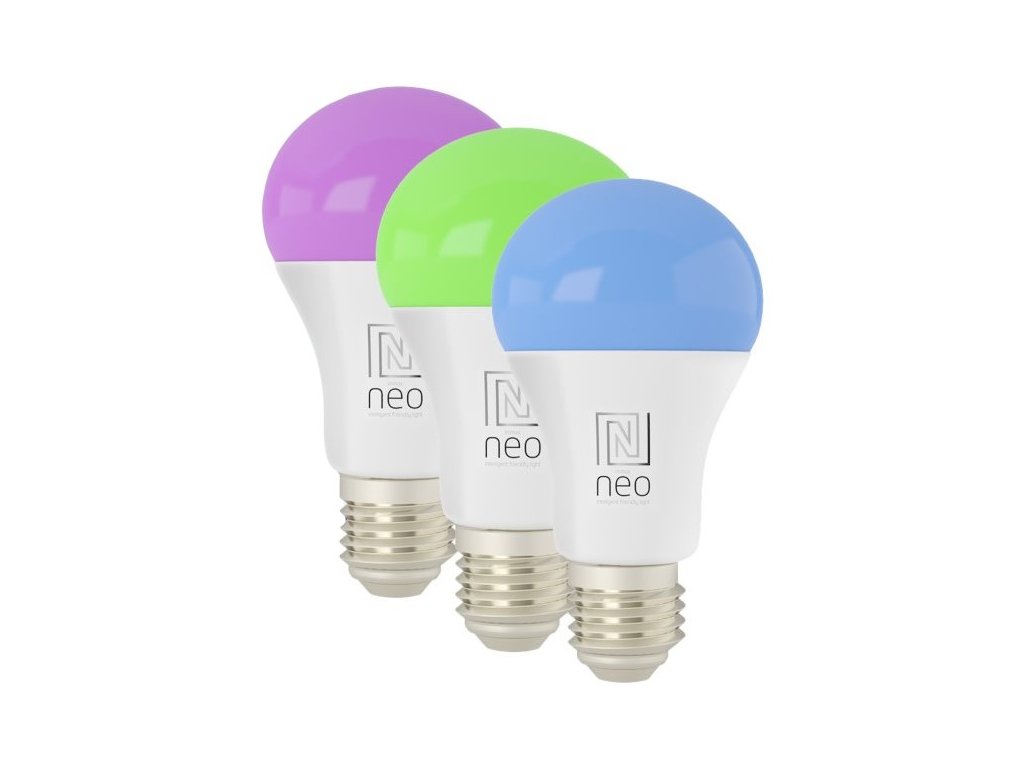 IMMAX NEO E27 9 W RGB+CCT 3 ksChytrá, stmívatelná, barevná LED žárovka umožňuje nastavení barvy a jasu světla dle aktuální potřeby. Kromě RGB barevné škály je možné měnit také teplotu světla od teplé až po studenou bílou. Žárovka je založena na bezpečné a spolehlivé bezdrátové komunikaci Wi-Fi. Samozřejmostí je kompatibilita se systémy iOS či Android a hlasovým ovládáním přes Amazon Alexu, Google Assistant nebo Apple Siri.