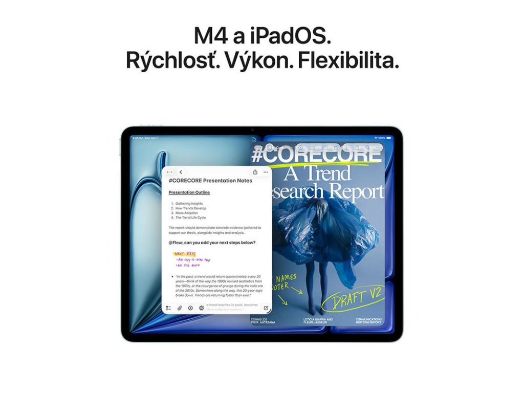 VÝKON A ÚLOŽNÝ PRIESTOR – Čip M4 prináša neuveriteľný výkon, pokročilú grafiku a plynulú prácu s viacerými aplikáciami naraz. A vďaka výdrži batérie na celý deň môžeš pokračovať v práci a hraní, kamkoľvek sa vydáš.