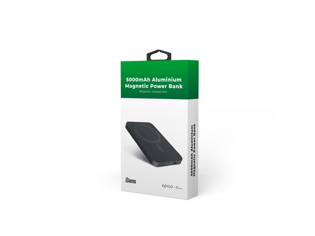 iStores by Epico 5000mAh Aluminium Magnetic Power Bank kompatibilná s MagSafe technológiou. Je vyrobená z ultra tenkého a kvalitného hliníku v kombinácii s minimalistickým a funkčným designom. Toto zariadenie má silný magnet, vďaka ktorému sa automaticky priľne k vášmu telefónu a zaistí presné a bezpečné nabíjanie, a to bez napojenia na kábel či náhodného prerušenia nabíjania. Táto funkcia je k dispozícii pre najnovšiu radu iPhone, ktorý nabíja maximálnym výkonom až 7,5 W. Ostatné smartfóny nabije maximálnym výkonom až 15 W. Power banku môžete taktiež použiť pre štandardné bezdrôtové nabíjanie. Zariadenie je kompatibilné s našim iStores by Epico Magnetic Sticker. Súčasťou balenia je kábel USB-C na USB-C.