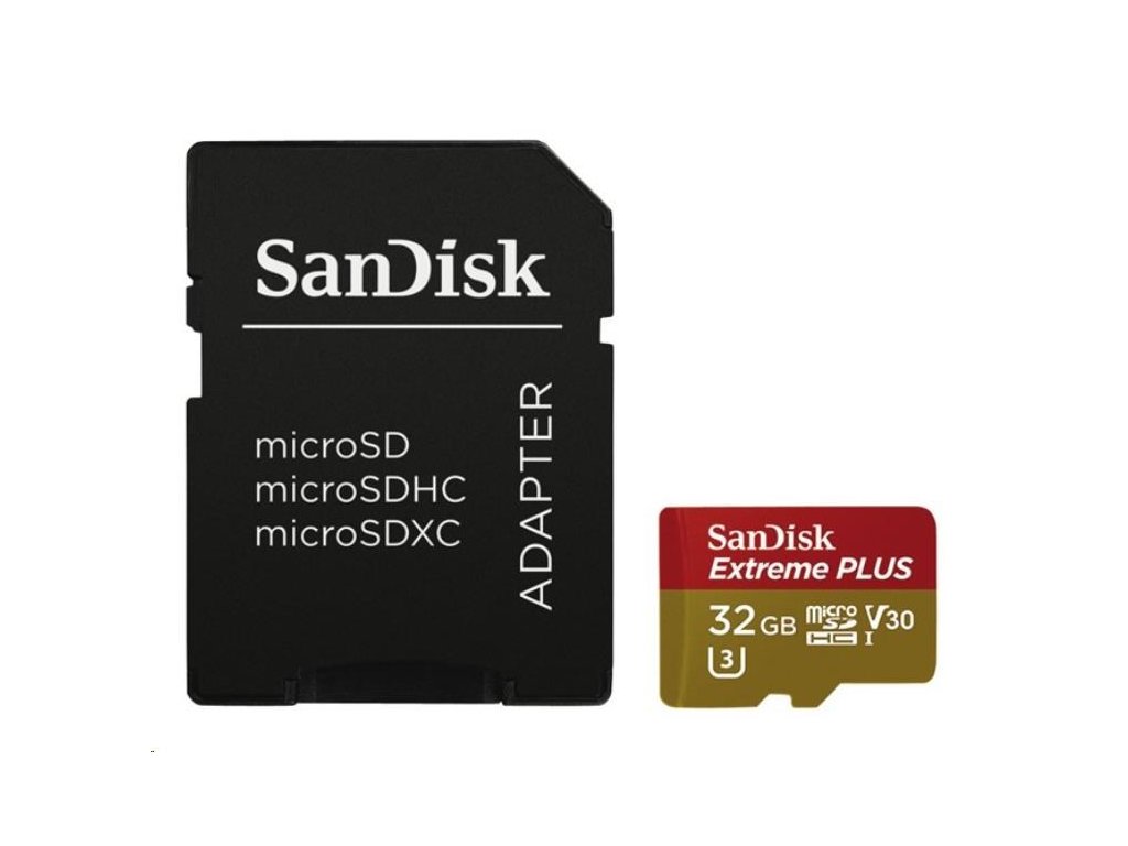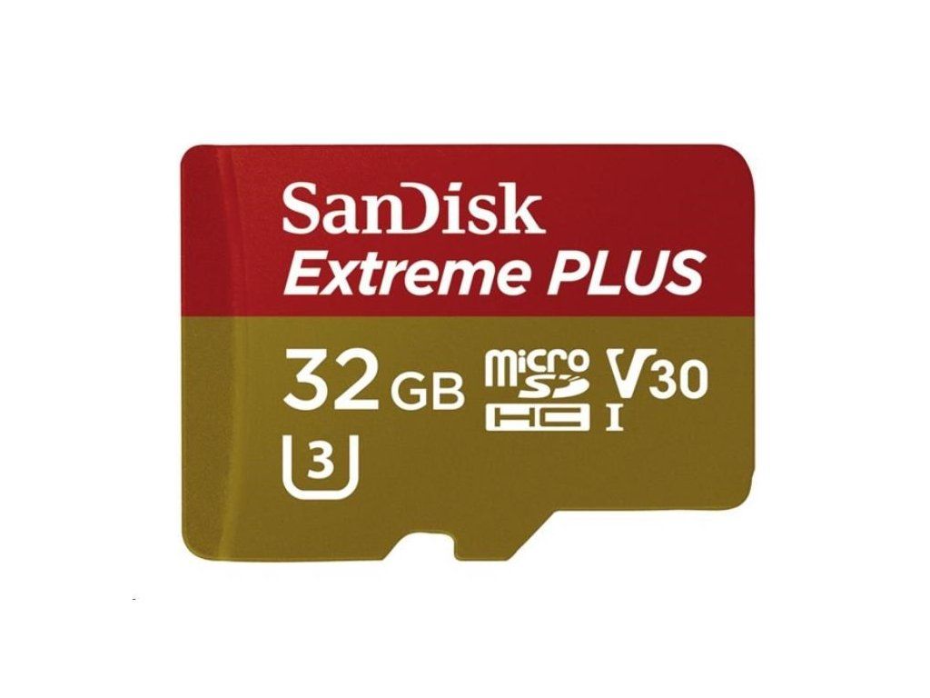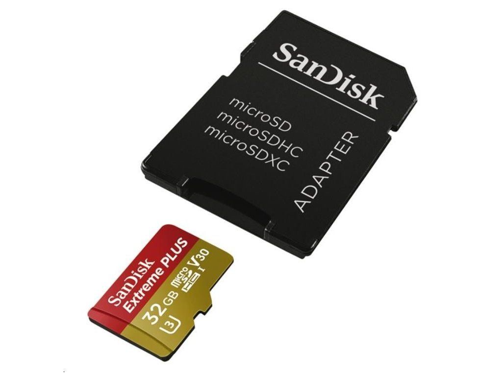 Karta SanDisk MicroSDHC 32GB Extreme PLUS (10MB/s, UHS-I V30, Rescue Pro Deluxe) + adaptér SDSQXBG-032G-GN6MA