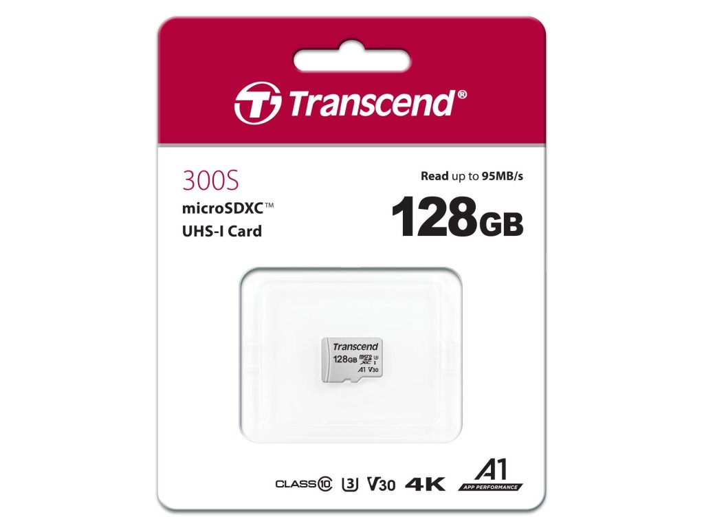 Karta TRANSCEND MicroSDXC 128GB 300S, UHS-I U3 V30 + adaptér TS128GUSD300S-A