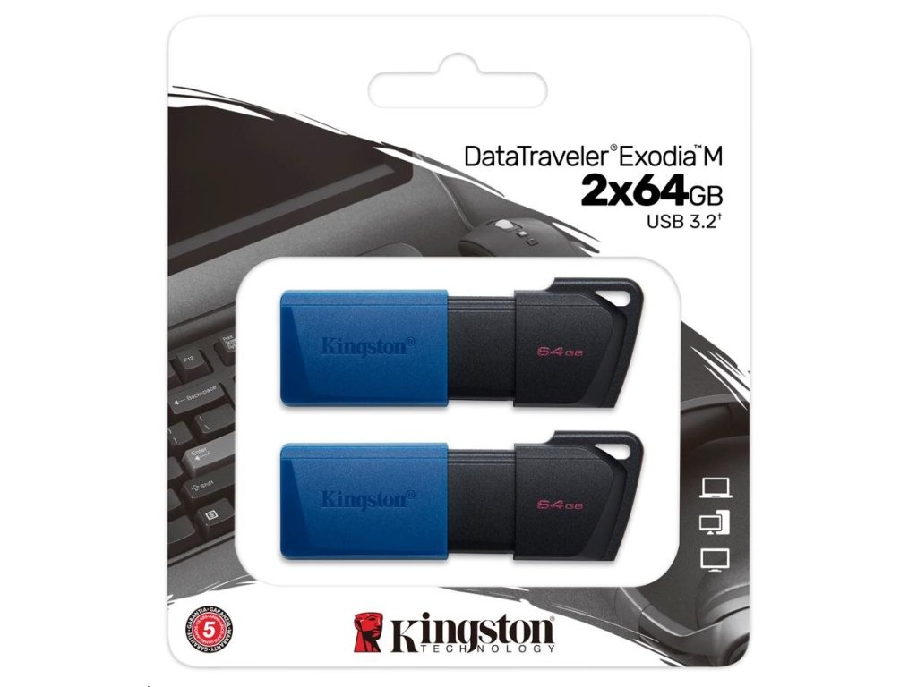 Kingston 64GB USB3.2 Gen 1 DataTraveler Exodia M (Black + Blue) - 2 kusy DTXM/64GB-2P