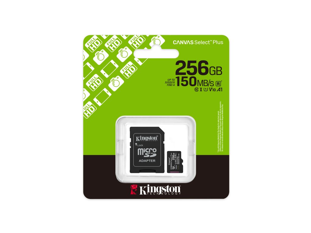 Karta microSD Canvas Select Plus od společnosti Kingston nabízí spolehlivý výkon, je kompatibilní se zařízeními se systémem Android a fotoaparáty a dosahuje rychlosti až 150 MB/s. Díky výkonu aplikací A1 zajišťuje plynulý multitasking a rychlé načítání. Je odolná a všestranná, takže je ideální pro každodenní potřeby úložiště. Paměťová karta microSD Canvas Select Plus od společnosti Kingston je kompatibilní se zařízeními se systémem Android a je navržena se zvýšeným výkonem na úrovni A1. Nabízí spolehlivou rychlost a velkou kapacitu pro rychlejší načítání aplikací a pořizování snímků a videí v kapacitě až 1 TB. Karta Canvas Select Plus microSD s vysokým výkonem, rychlostí a odolností je navržena tak, aby byla spolehlivá, takže si ji můžete vzít kamkoli s jistotou, že vaše fotografie, videa a soubory budou chráněny. * UHS-I rychlostní třída, U1, V10, A1 * Čtení až 150MB/s * Velikost karty:11mm x 15mm x 1mm * Velikost adapteru:24mm x 32mm x 2.1mm * Formát: exFAT * Operační teplota: -25°C~85°C * Skladovací teplota: -40°C~85°C * Voltáž: 3,3VDodatočné parametre