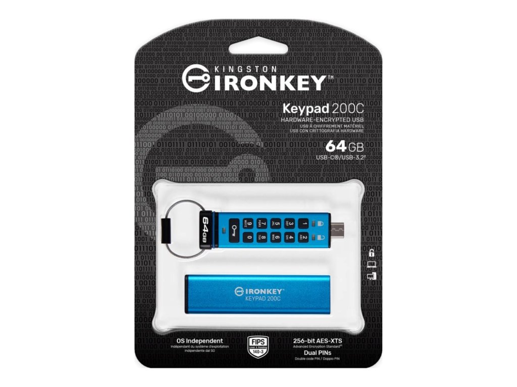 Rada Kingston IronKey Keypad 200 sa skladá z hardvérové šifrovaných diskov USB typu A a USB typu C nezávislých od operačného systému s alfanumerickou klávesnicou pre jednoduchý prístup pomocou kódu PIN. KP200 obsahuje 256-bitové hardvérové šifrovanie XTS-AES. Je tiež certifikovaný podľa štandardu FIPS 140-3 Level 3 (pending) pre zabezpečenie vojenskej úrovne s vylepšeniami, ktoré ďalej zvyšujú laťku ochrany dát. Jeho obvody sú pokryté vrstvou špeciálneho epoxidového povlaku, ktorý prakticky znemožňuje vybratie súčiastok bez ich poškodenia; tento odolný epoxid zabraňuje útokom na polovodičové súčiastky.
