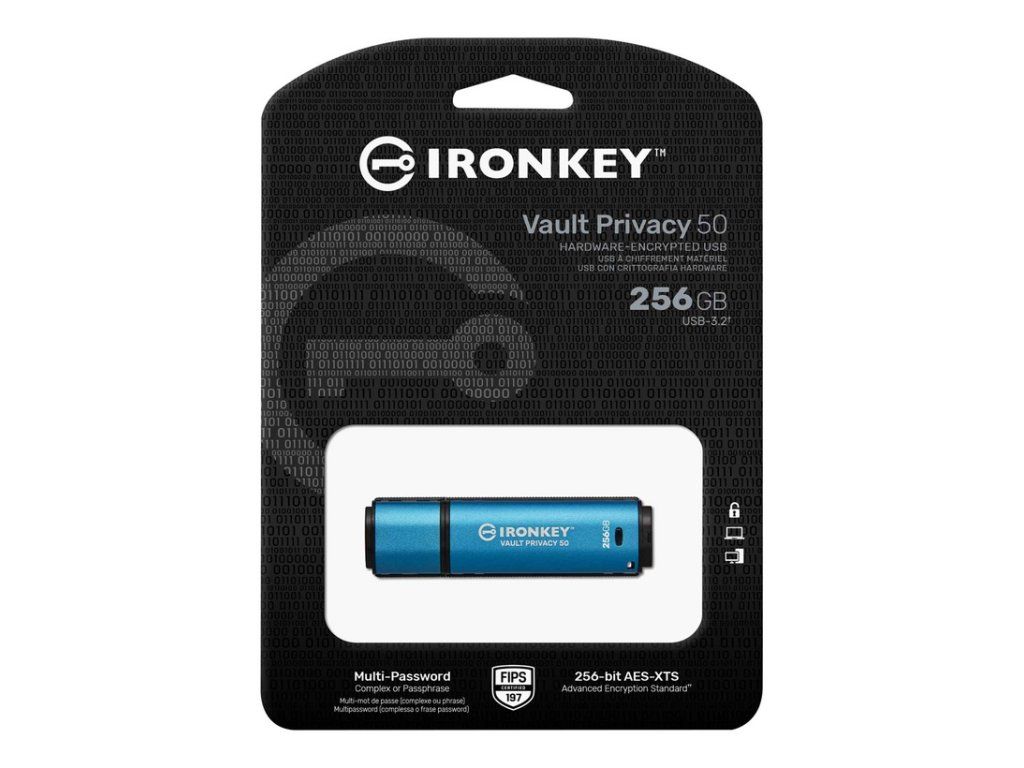 Kingston IronKey Vault Privacy 50/256GB/USB 3.2/USB-A/Modrá IKVP50/256GB