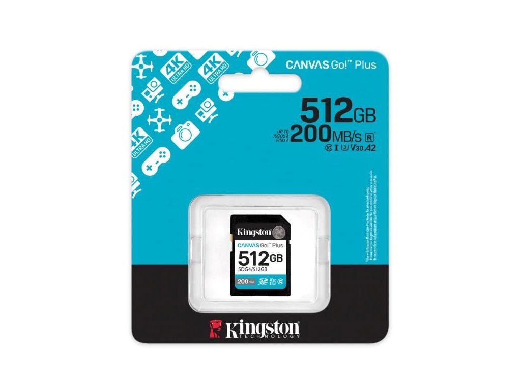 Kingston SDXC karta 512GB Canvas Go! Plus, R:200/W:160MB/s, Class 10, UHS-I, U3, V30 SDG4/512GB