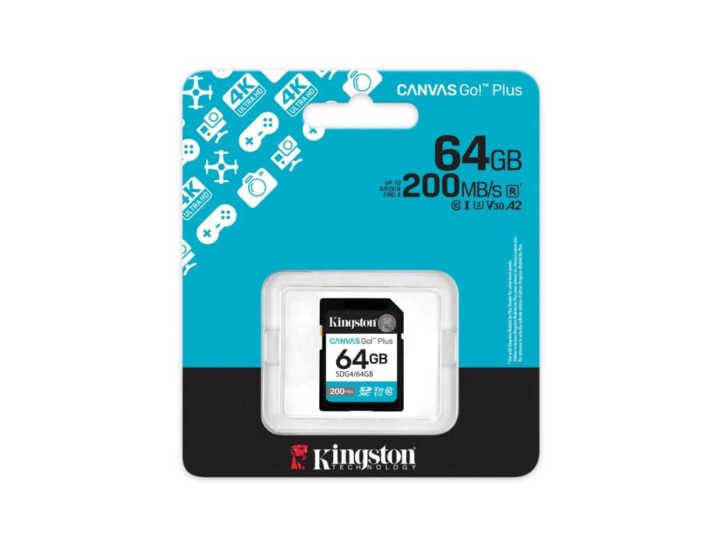 Kingston SDXC karta 64GB Canvas Go! Plus, R:200/W:160MB/s, Class 10, UHS-I, U3, V30 SDG4/64GB